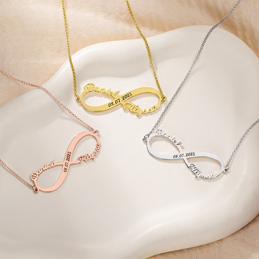 This necklace is a true testament to the uniqueness of your love story. Personalized with the names of you and your partner, as well as a cherished date that holds special meaning, this pendant becomes a one-of-a-kind treasure that will forever remind you of the unbreakable connection you share.