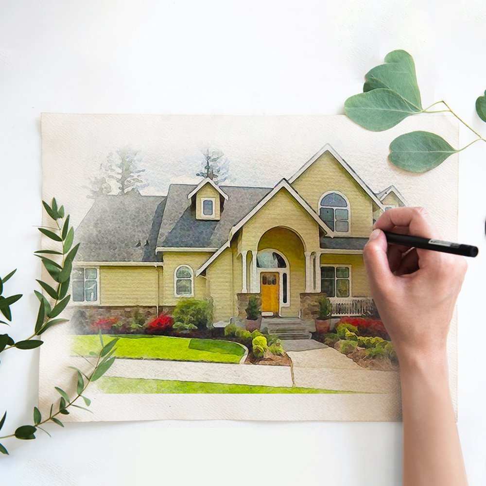 • Let us transform your house into a beautiful, custom home portrait digital watercolour painting! Our custom paintings are the perfect way to bring your home to life with a memorable piece of artwork. These portraits make fabulous realtor closing gifts, and are perfect for first-time home buyers and seasoned clients alike. They are also a great way to preserve the sweet memories of a childhood home and the houses where your stories continue.