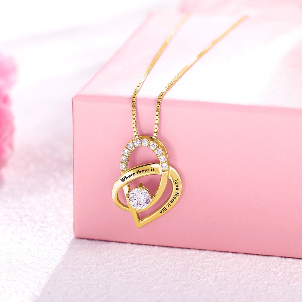 Let your love words spark with this beautiful heart necklace. Words are inscribed in the heart frame while a round birthstone embedded in the centre. For the engraving content, we provide some sweet ideas which will be delicately engraved on it. If you have more to say, don't hesitate to choose our Personalized phase option to tell her!