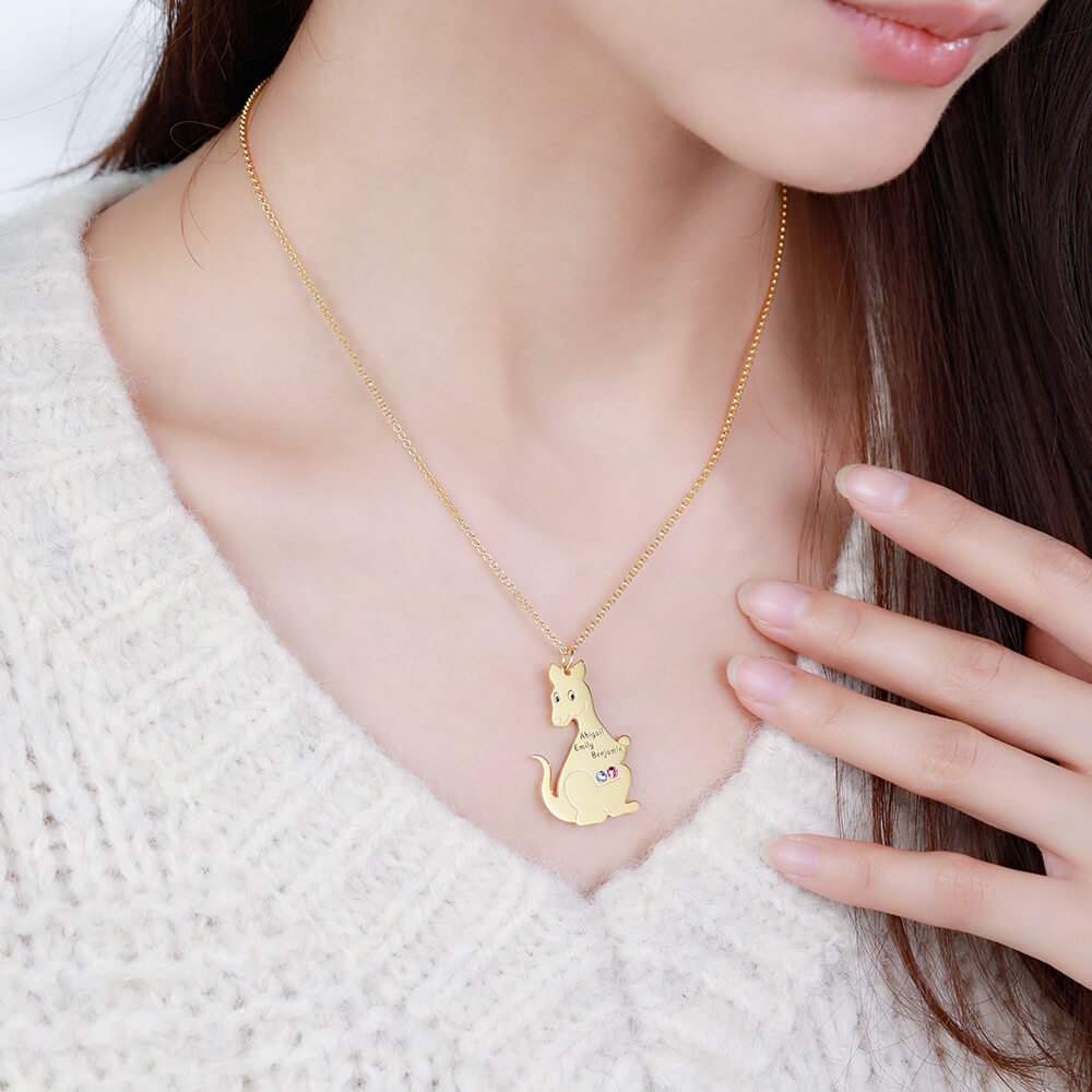 Kangaroo Mom Necklace Engraved Kid's Name & Birthstone
