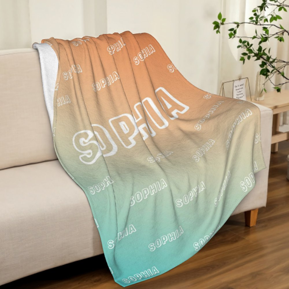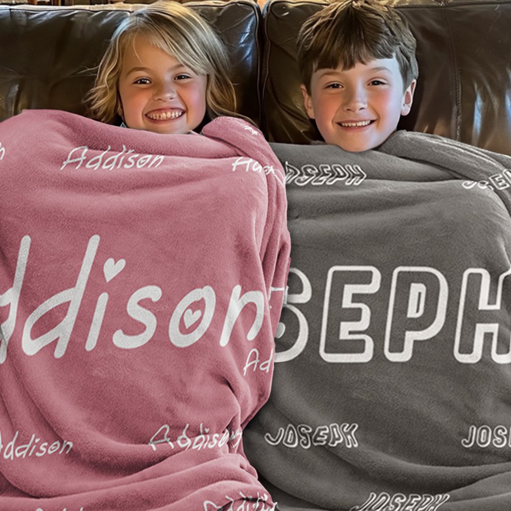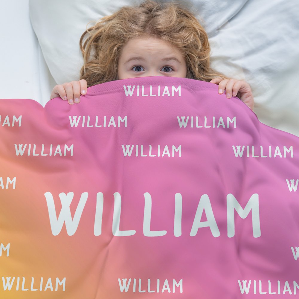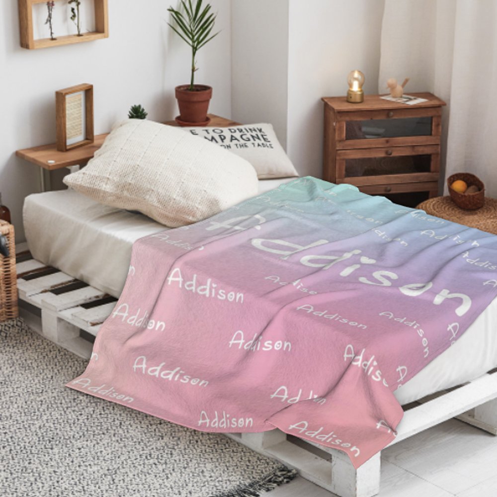 How irresistible this blanket is! Customize it with your child's name, printed in large, bold letters in the centre and surrounded by smaller letters. You can choose the background colour according to your child's preference so that their name will shine even more against the background. With its eye-catching colour and unique sense of belonging, it is sure to be loved by your child.