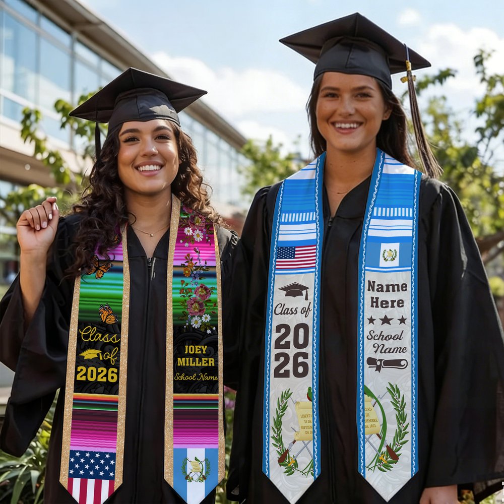 Persoinalized Guatemala USA Double Flag Graduation Stole with Name School Name and Year Graduation Gift for Class of 2026 Graduates