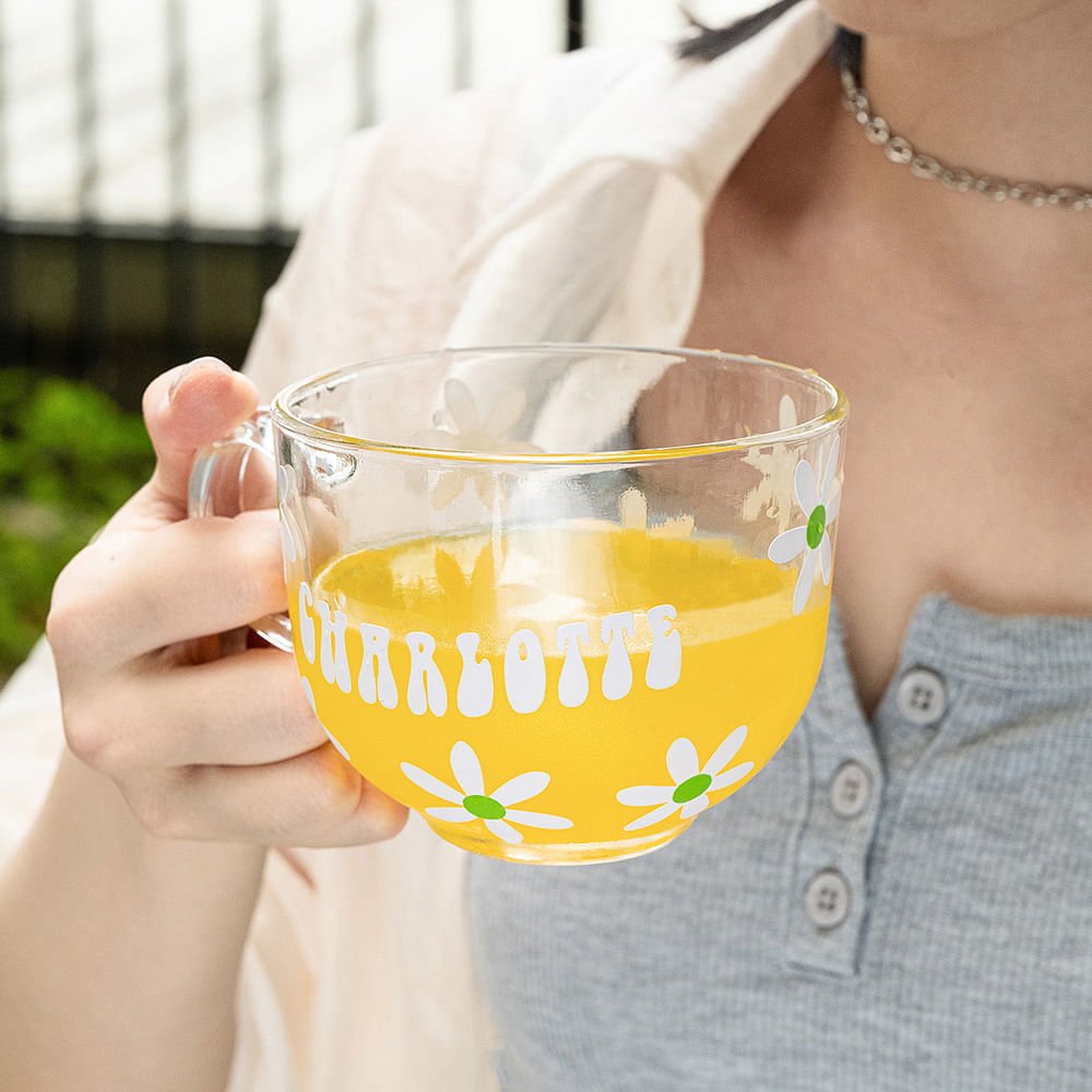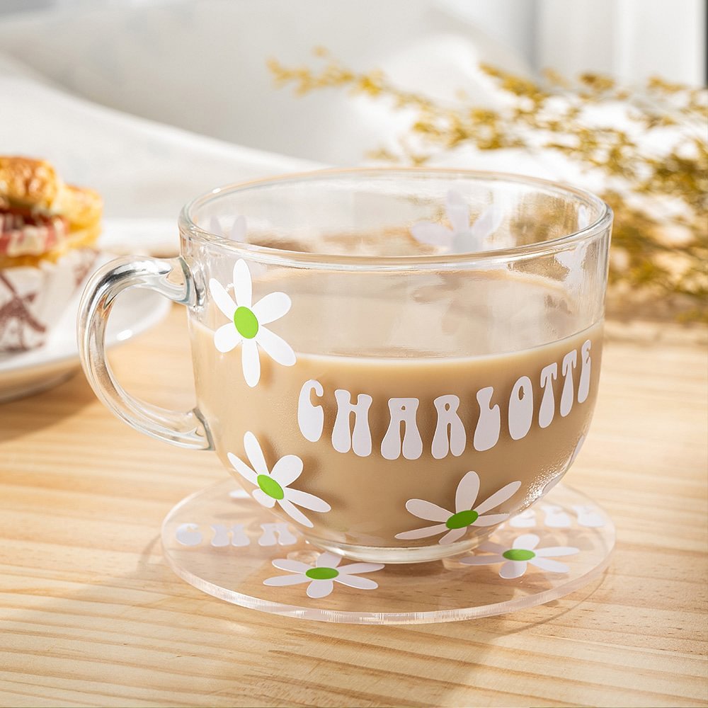 Embrace a touch of individuality with this daisy retro flower glass coffee mug, customized with a name for a truly special gift. Perfect for adding a personal flair to your friend's birthday celebrations.