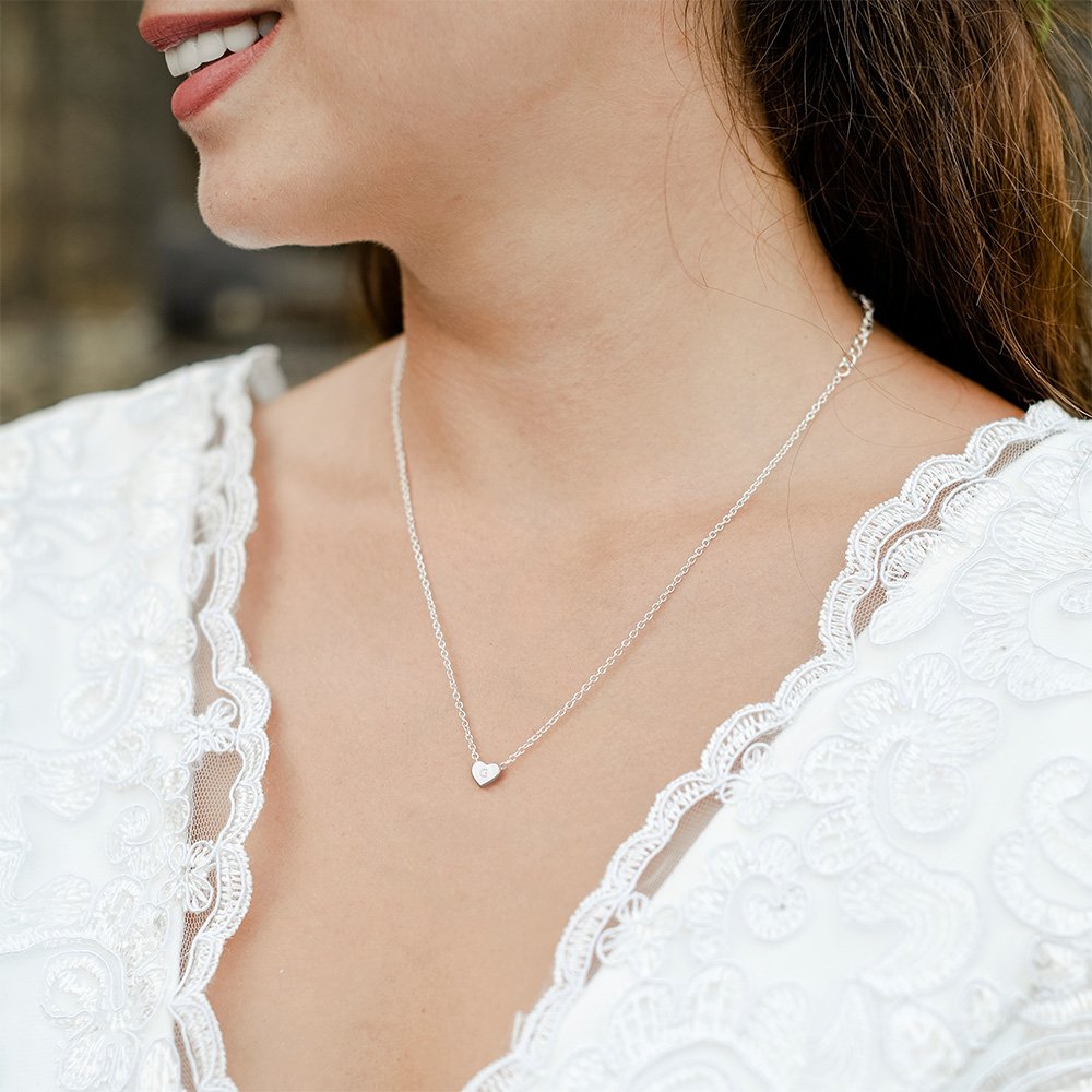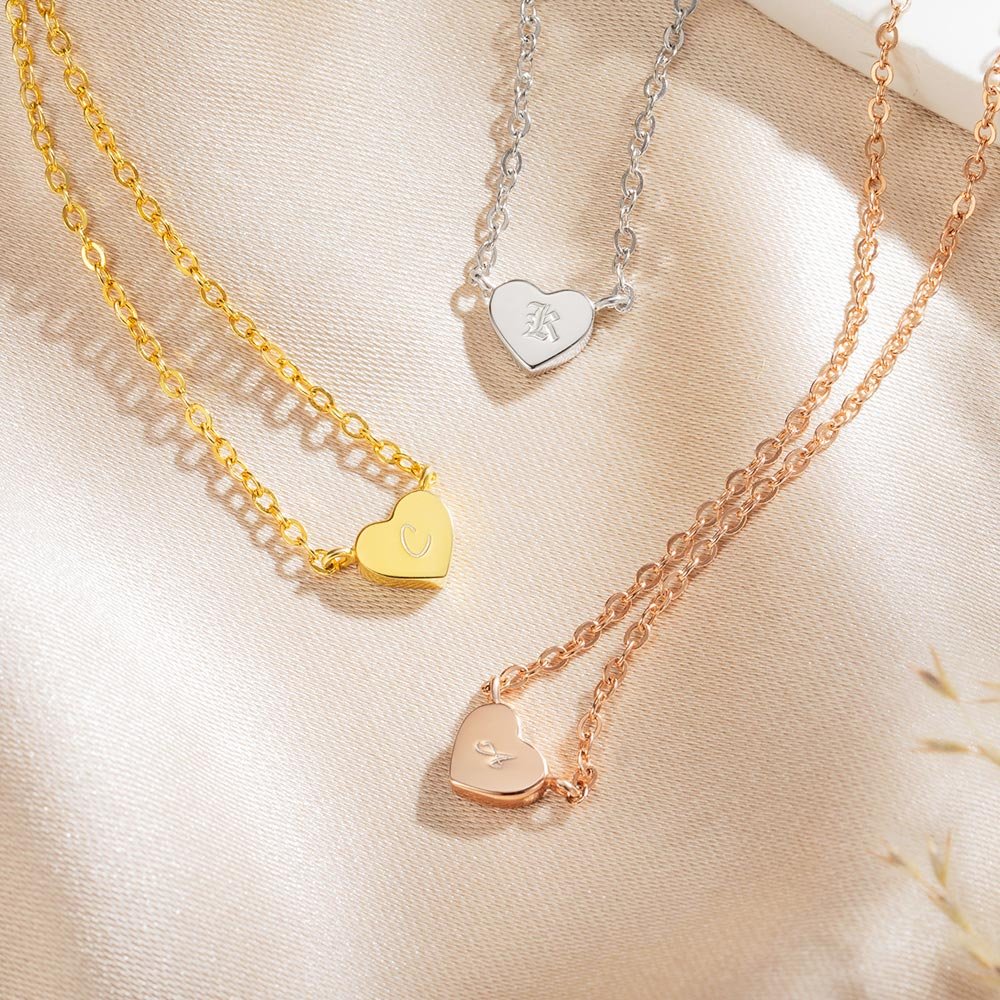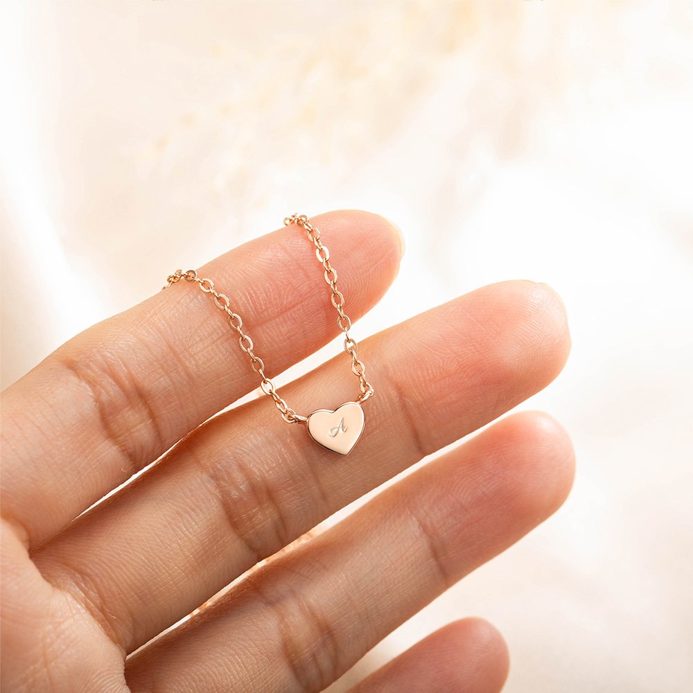 Personalized Sterling Silver Solid Minimalist Heart Necklace with Engraved Letter Valentine's Day Gift for Her