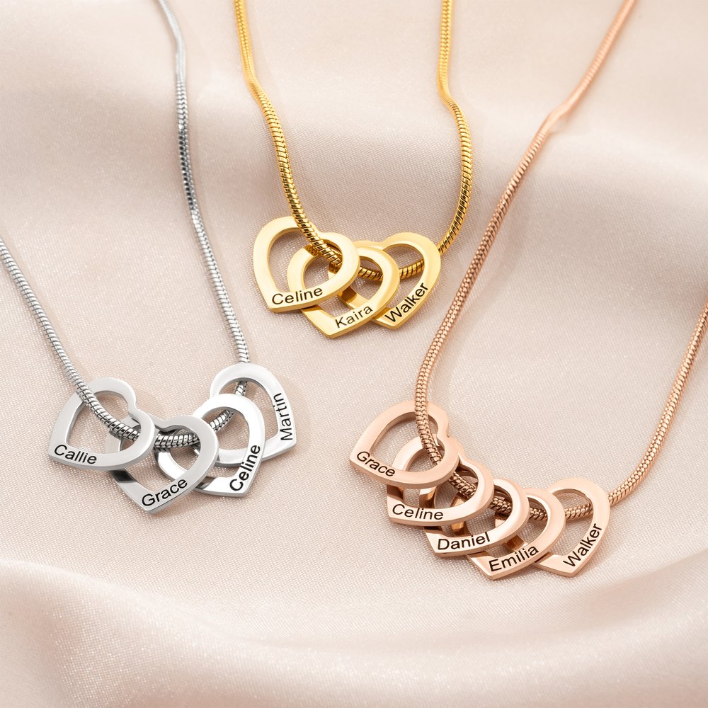The necklace is designed with 1-12 love ring pendants, which are unique and exquisite. Each heart can be personalized with a name, representing each family member, creating an exclusive, loving personal keepsake.