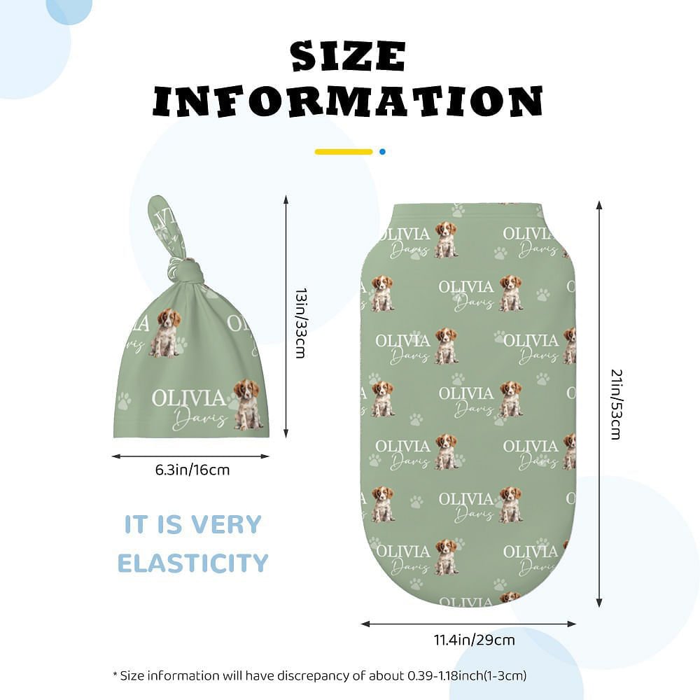 This baby swaddle set features cute pet dog elements. There are two styles available. The solid colour style is simple and generous, and the paw print style is pretty and playful, all adding a bright colour to your baby's daily life. You can also customize your baby's name to ensure that each product is filled with love and uniqueness.