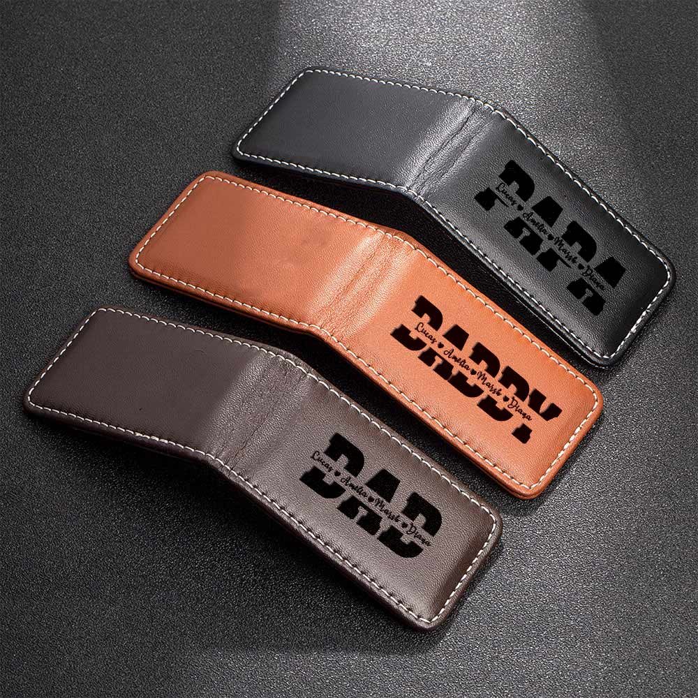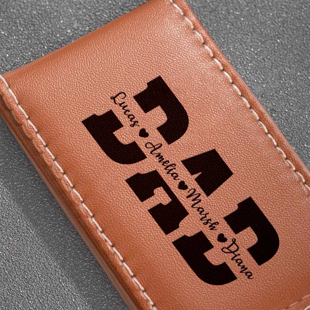 Our Leather money clip is a meaningful gift that can be engraved with the names of 1 to 6 kids, making it a special and personal keepsake for dad or grandpa. The engraved names add a heartwarming feel and showcase the love and bond within the family.