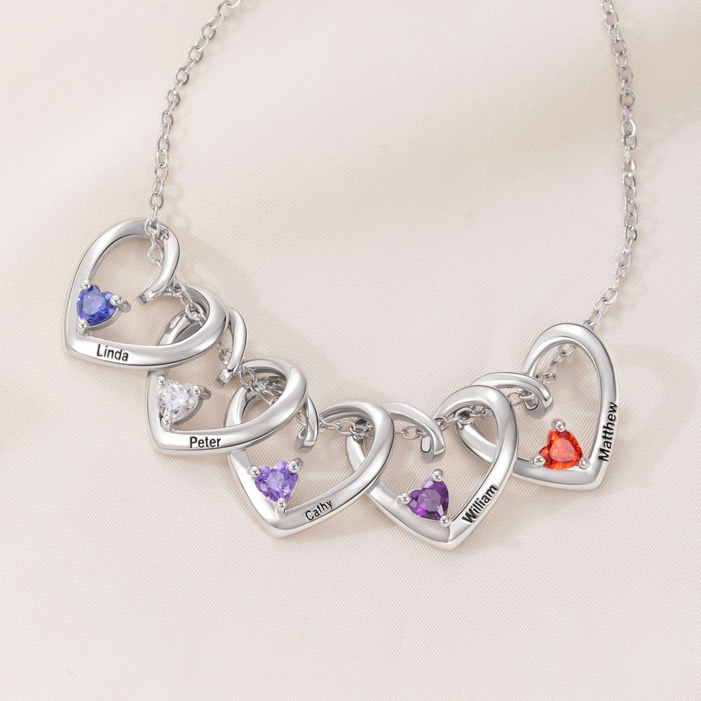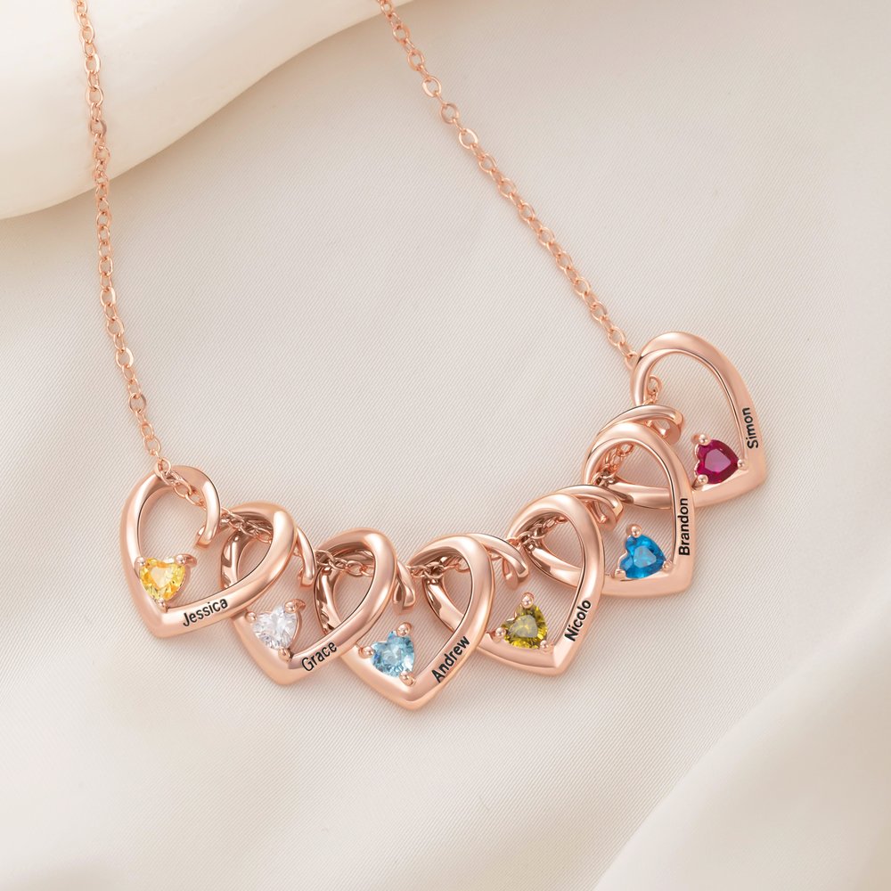 This beautiful heart pendant necklace allows you to customize it with up to 6 hearts and names, representing your children or loved ones. Each heart symbolizes a special bond, making it a meaningful piece of jewellery.