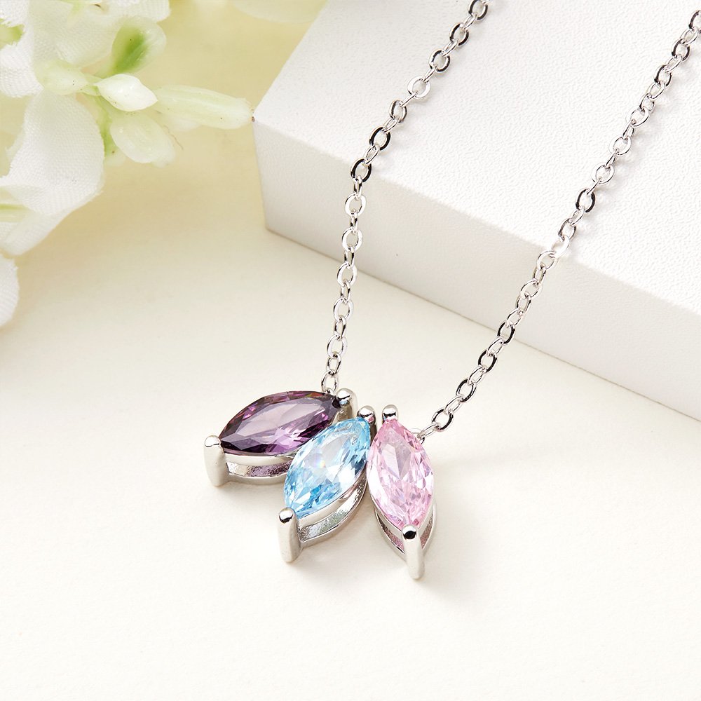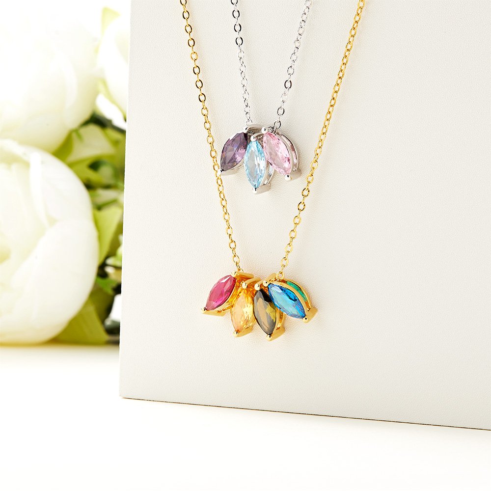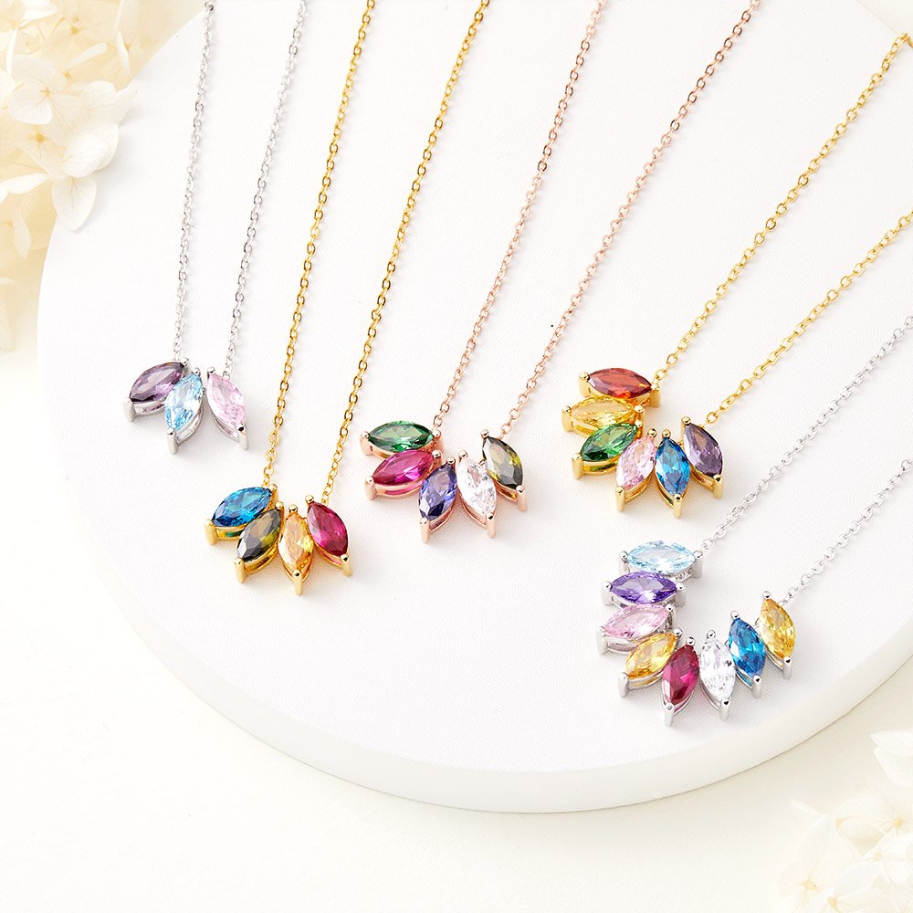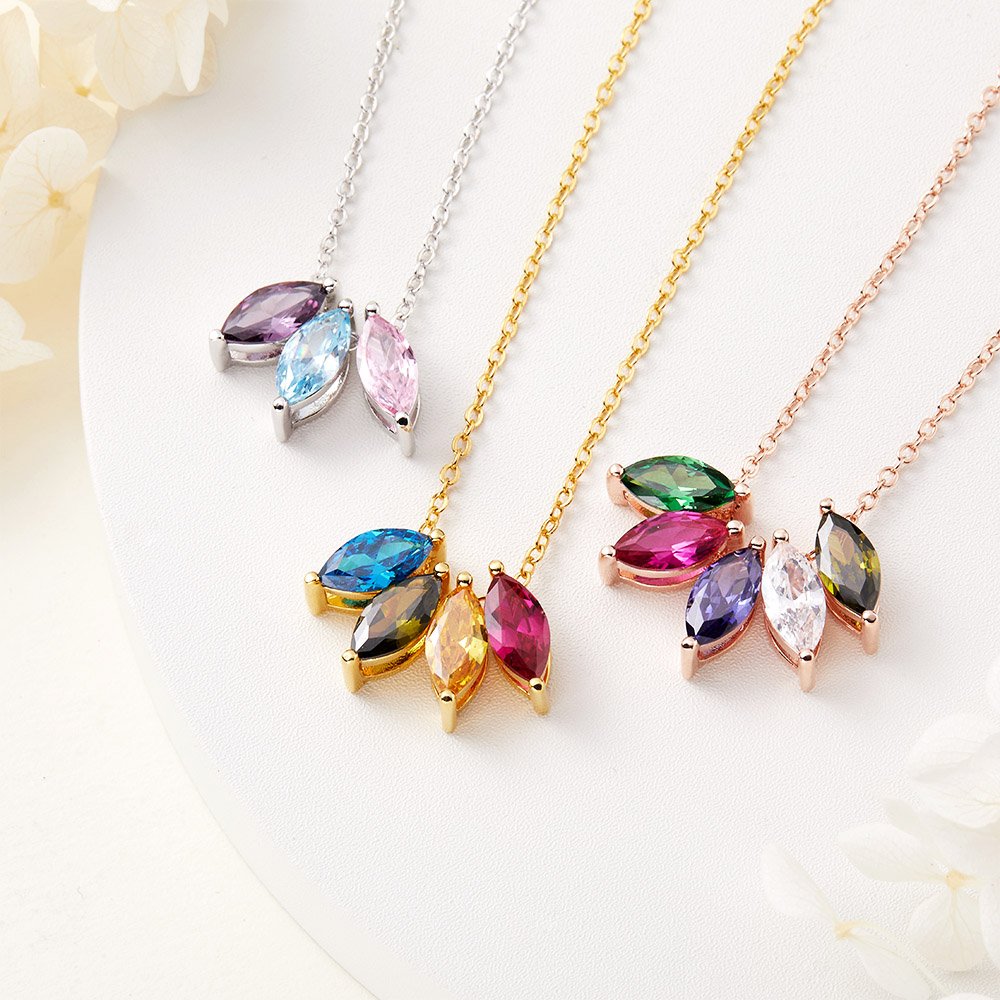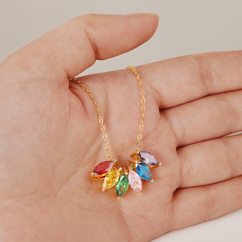 The necklace features up to 8 marquise-cut birthstones representing your loved ones. Customize this necklace by selecting the birthstones of your choice, creating a unique and meaningful piece that reflects the special people in your life.