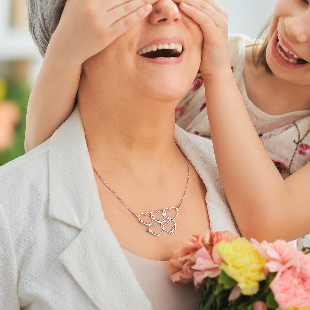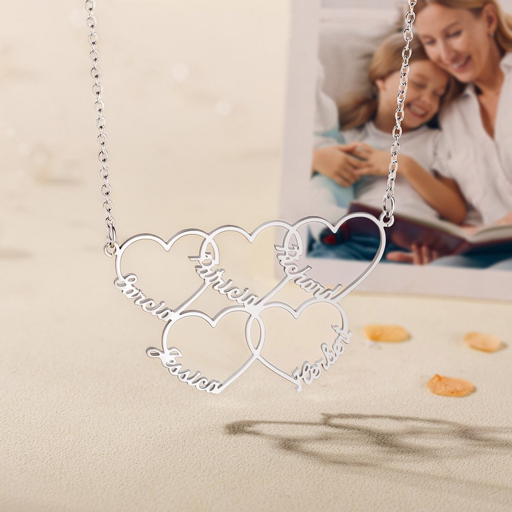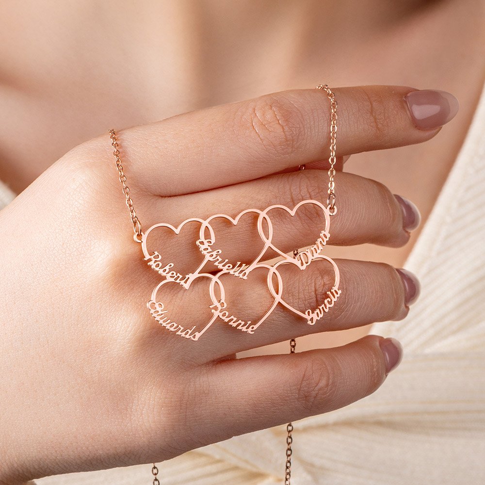 This beautiful heart pendant necklace allows you to customize it with up to 8 hearts and names, representing your children or loved ones. Each heart symbolizes a special bond, making it a meaningful piece of jewellery.