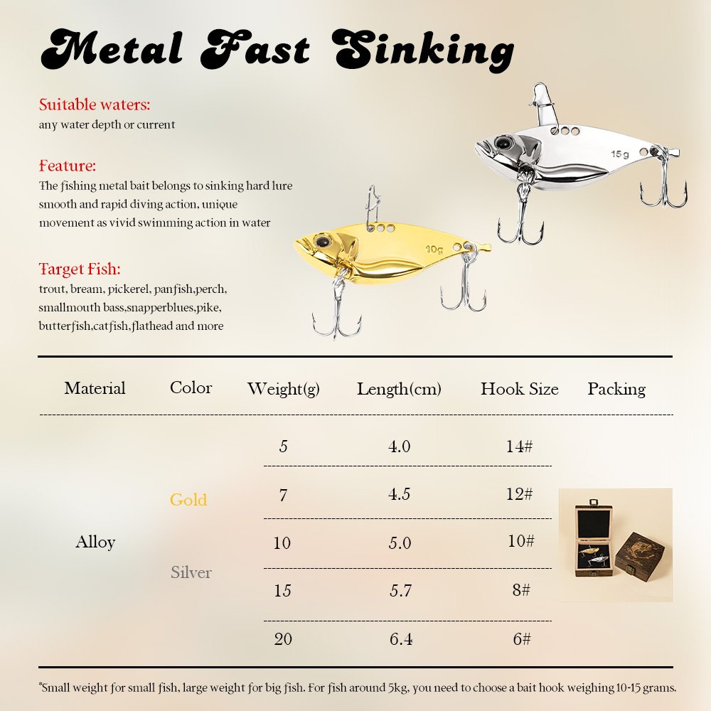The set is made of high-quality zinc alloy that is not easy to rust. The hook part is very sharp and can withstand rigorous fishing. The matching wooden box provides elegant storage and protects the lures, ensuring they remain intact on your next fishing adventure.