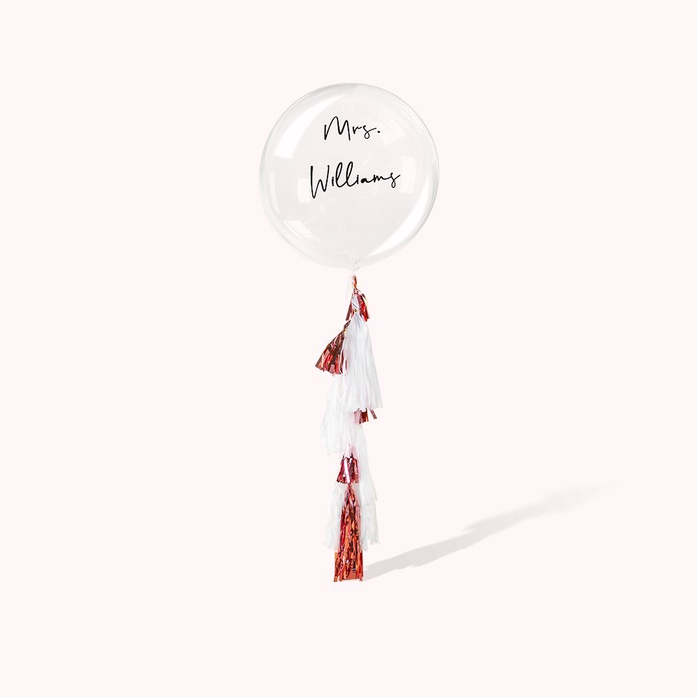 These balloons make excellent decorations and add a happy atmosphere to a variety of parties and events wedding parties, and bridal showers. A personalized vinyl decal with the personalization of the bride's future last name in the black scripted text - stand out in the picture!