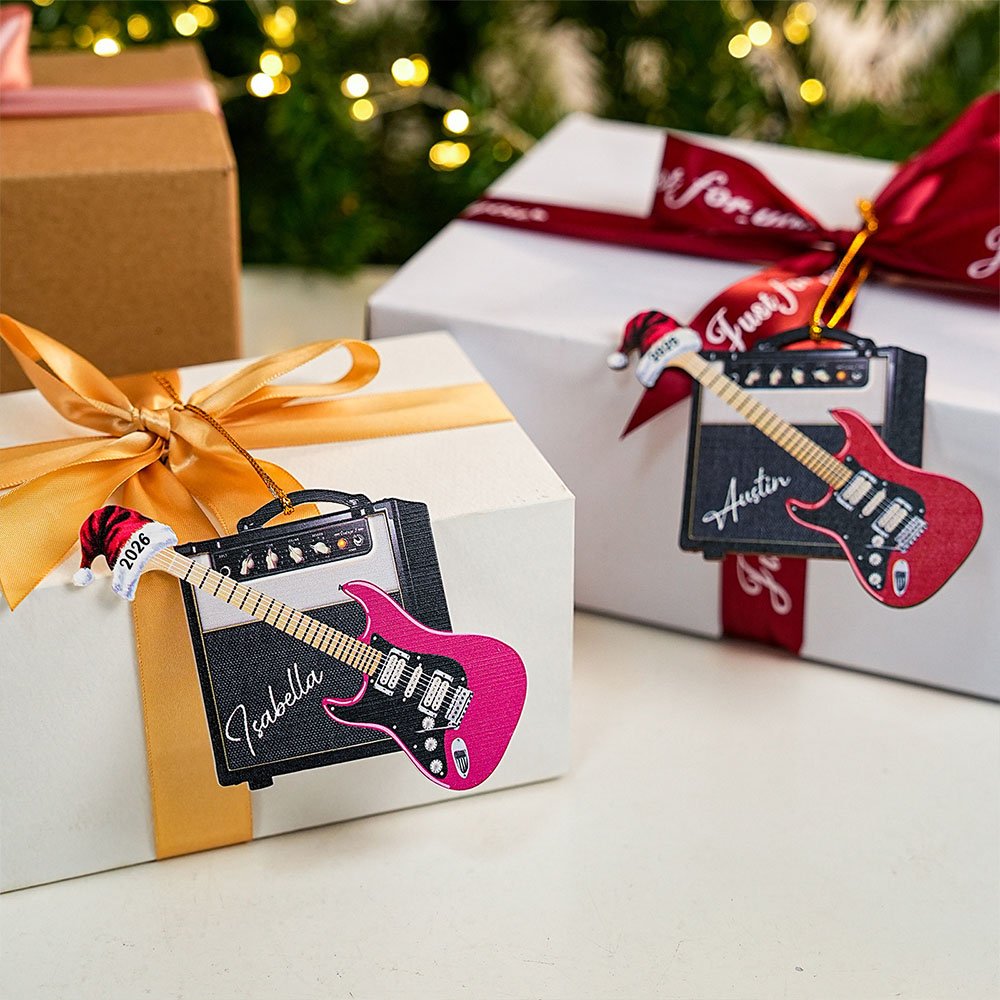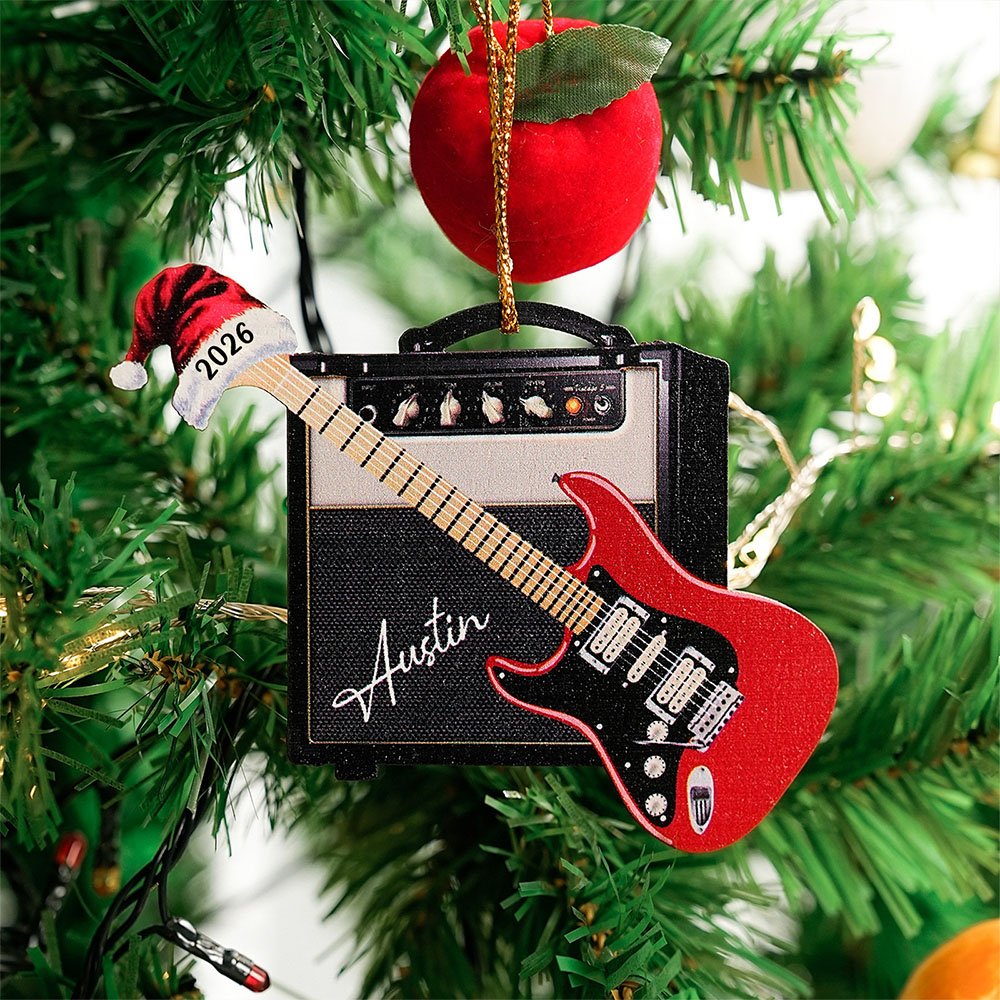 This unique 3D effect ornament features a vintage guitar and speaker, paired with a Santa hat, combining musical passion with festive cheer. You can personalize your name on the speaker and the year on the hat to create a heartfelt keepsake that captures the spirit of Christmas and the love of music.