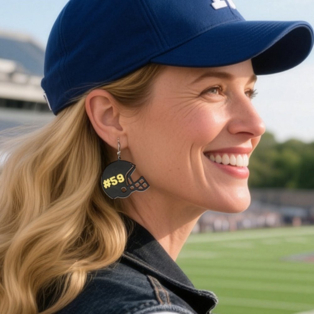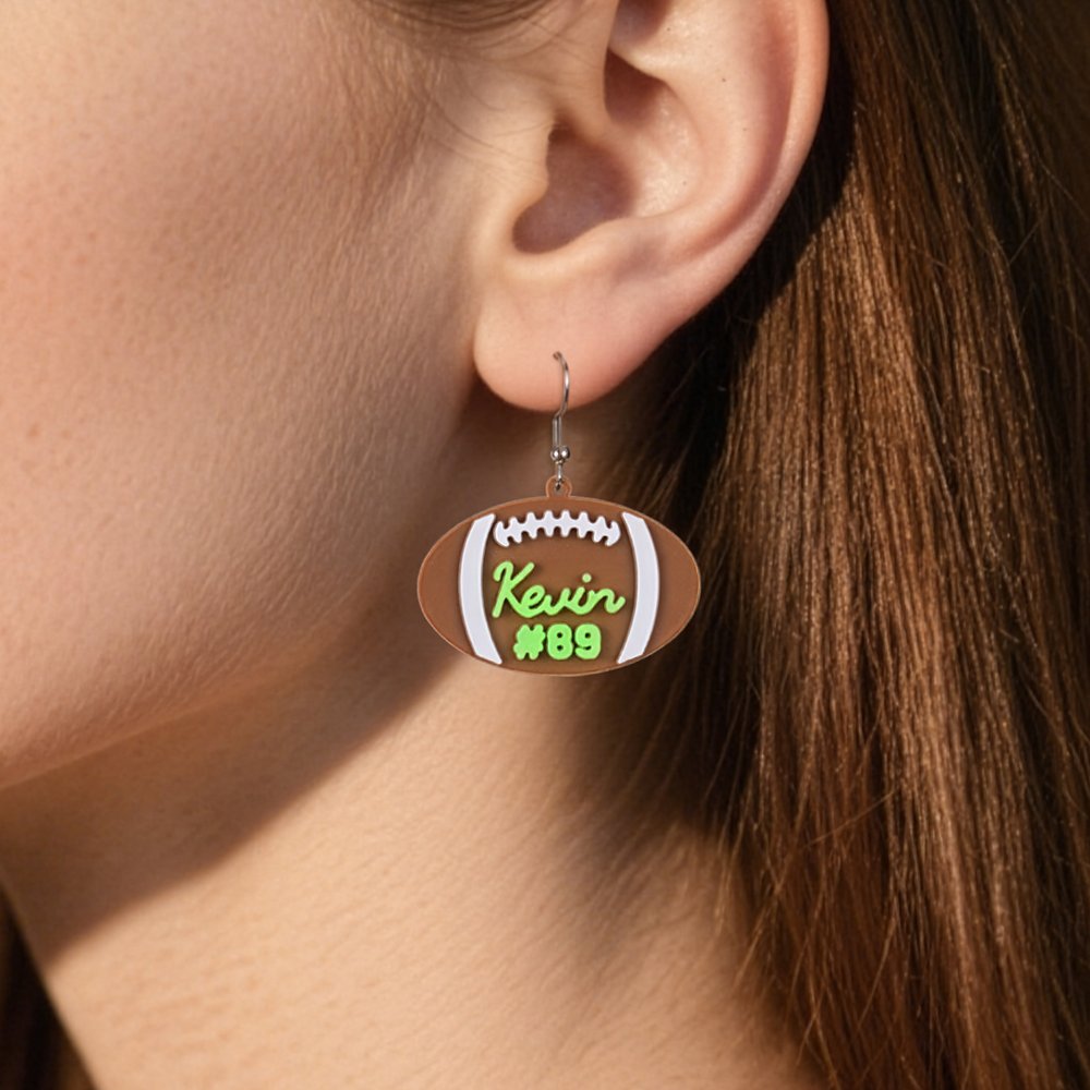 Each earring is inspired by the sport of football, designed in the shape of a football and helmet, making it a stylish accessory tailored for female football enthusiasts. You can choose personalized patterns and customize names, numbers, and text, making each piece one-of-a-kind and perfectly showcasing your personality and passion. This unique design not only catches the eye but also evokes a passion for football culture and camaraderie.