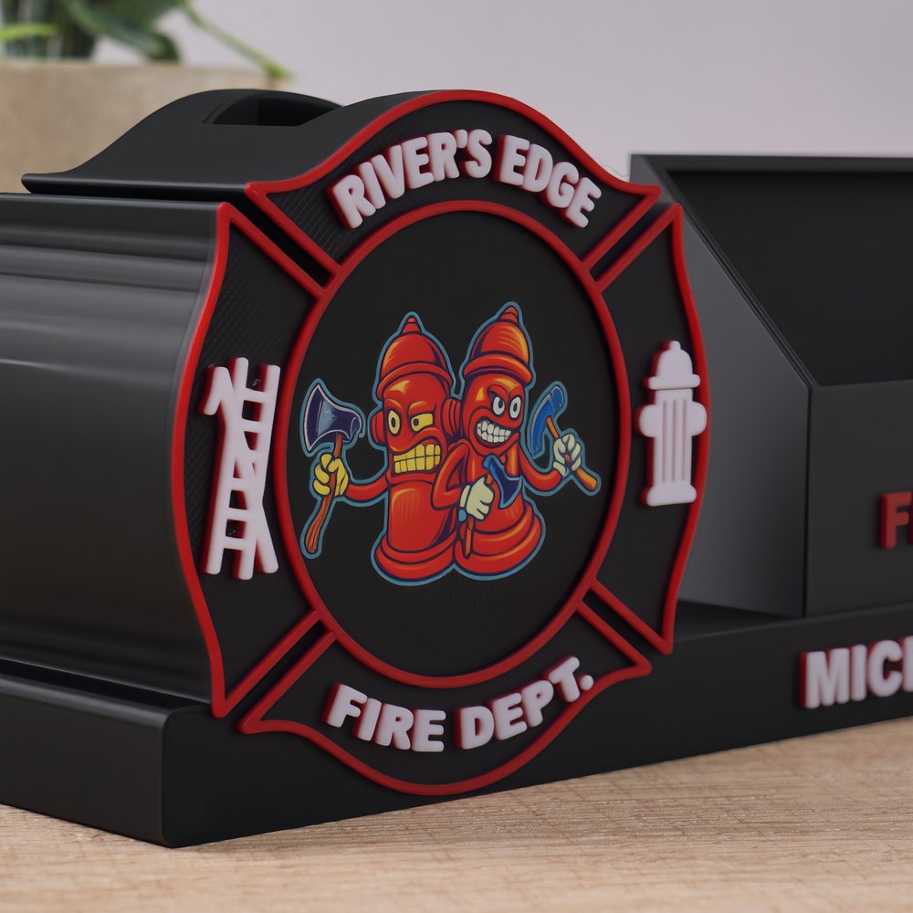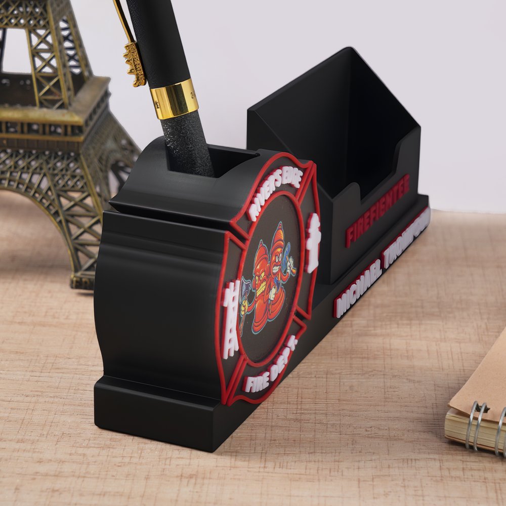 Designed to neatly organize business cards, work IDs, and commonly used pens, it also serves as an elegant desktop display. Its compact size fits perfectly on office desks, fire station workstations, or meeting tables, helping maintain an orderly workspace while consistently reflecting a professional image.