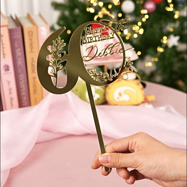 Featuring a beautiful leaf design, our cake topper embodies elegance and nature. Perfect for birthdays, anniversaries, and any joyous occasion, this elegant decoration adds a personal touch by incorporating your name.