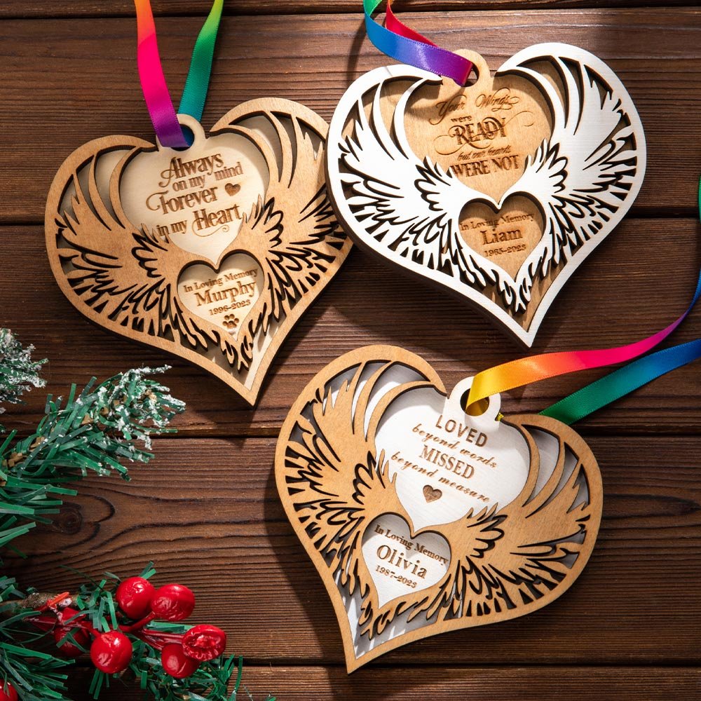 This Personalized angel wings ornament can be given as a thoughtful gift to someone who is going through a difficult time. By presenting it as a Christmas gift, you can provide comfort, support, and encouragement during the holiday season, reminding them that love always endures.