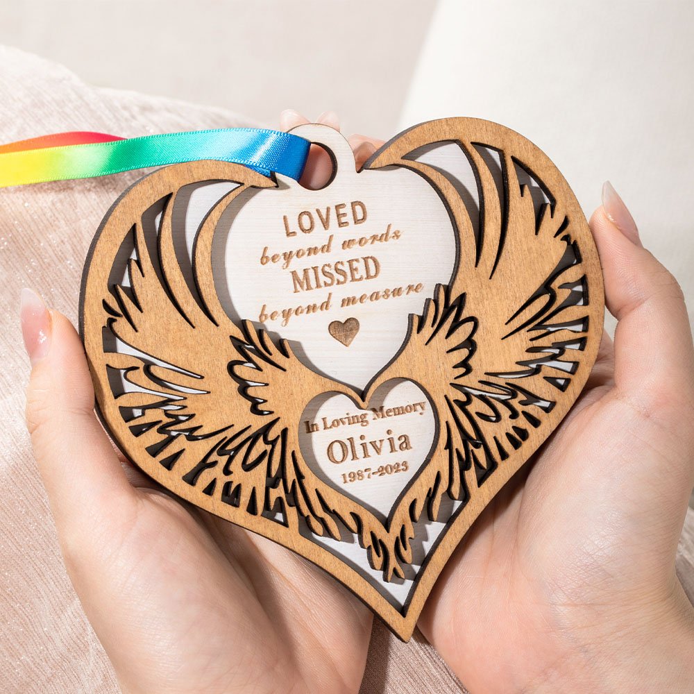 This angel wings wooden ornament is a heartfelt way to remember and honor loved ones who are no longer with us during the holiday season. Whether it's a family member or a beloved pet, this ornament serves as a reminder that their love will forever be in our hearts.