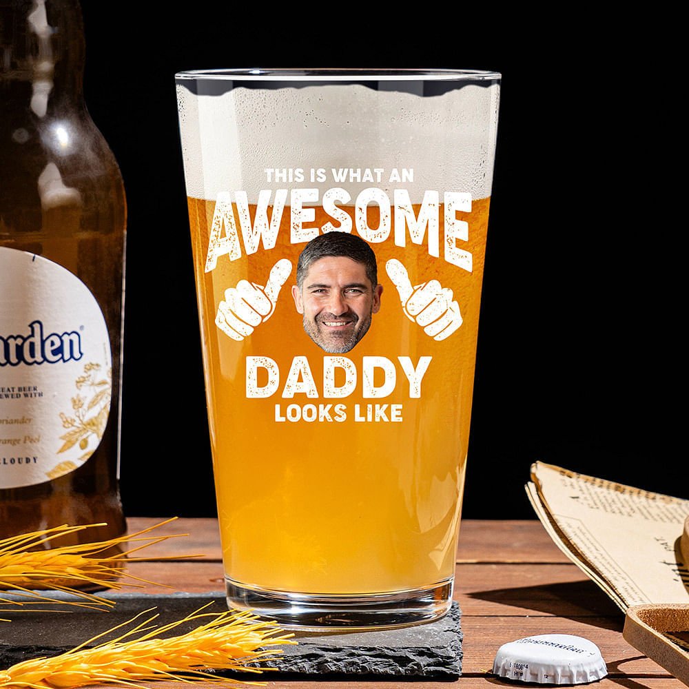 This beer glass, which can be customized with a portrait photo and heartfelt text like "This is what an awesome dad/mom... looks like" or a custom title, is an everyday reminder of love and admiration.