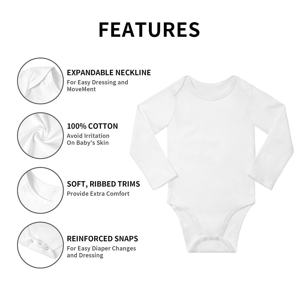 The baby onesie features an expandable neckline, making it a breeze to dress your little one. This ensures that the garment slides easily over your baby's head without causing any discomfort or irritation.