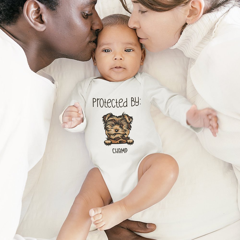 This baby onesie showcases adorable dog and cat breeds in its pattern, adding a touch of cuteness and uniqueness. It's a great gift option for families who have pets and want to share their love for animals with their little ones.