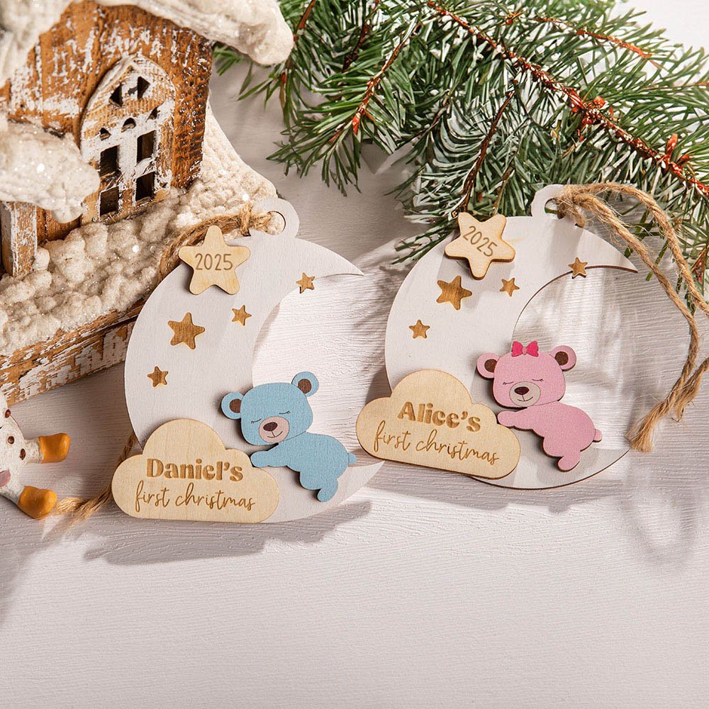 Each ornament showcases a cute little bear on the moon, adding a touch of whimsy and warmth. Its unique design captivates children and enhances the charm of your Christmas tree. Personalise this ornament with the baby’s name and year, transforming it into a cherished keepsake. Families will treasure it for years, creating lasting memories of the first Christmas.