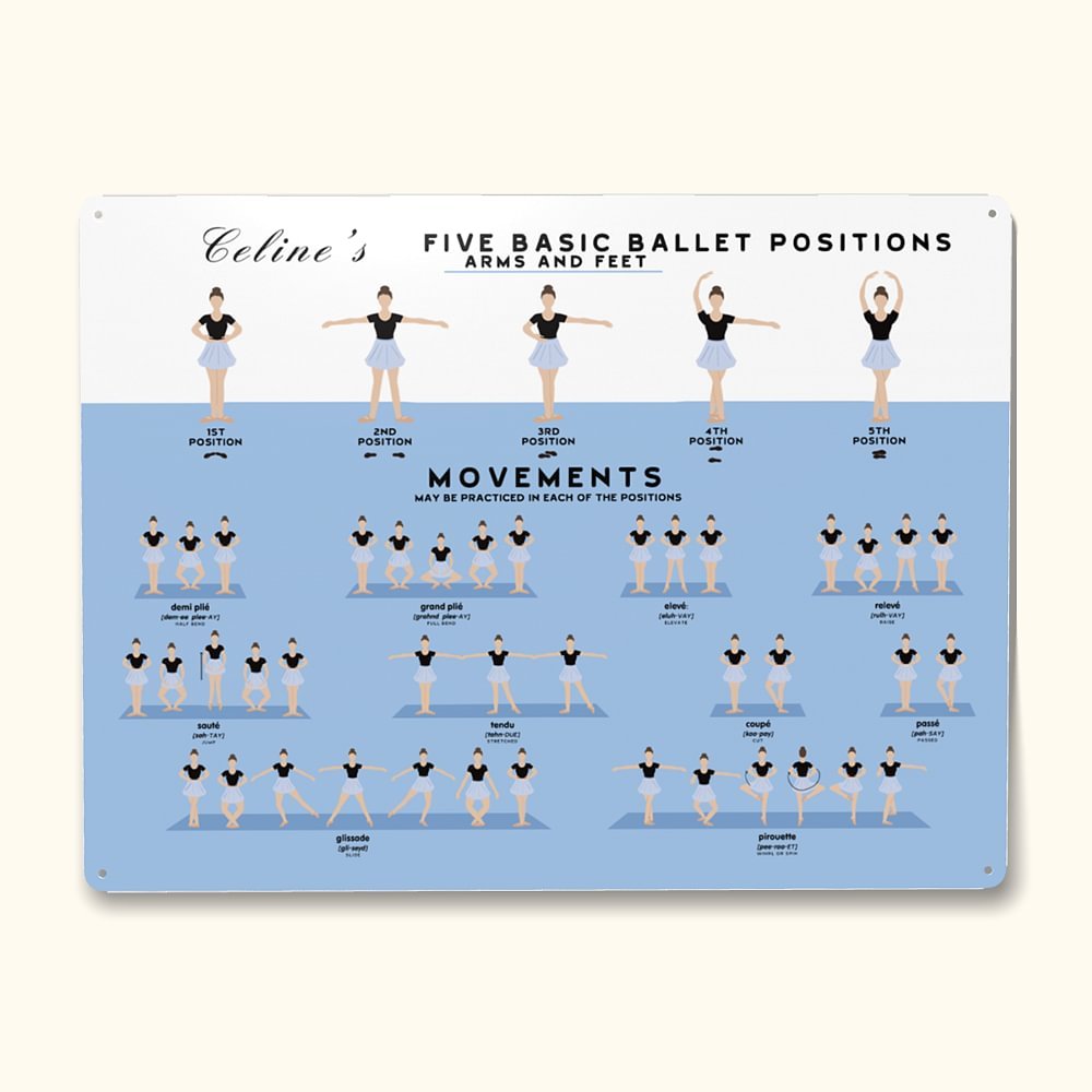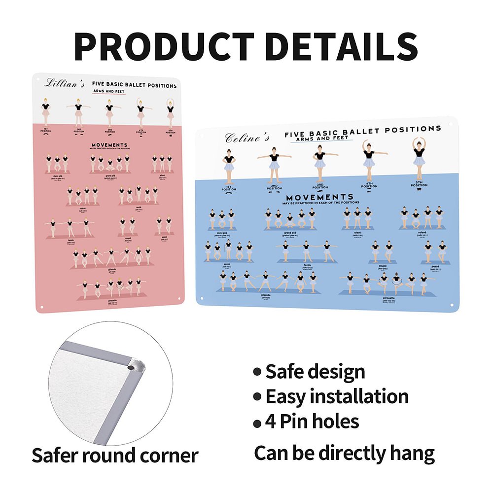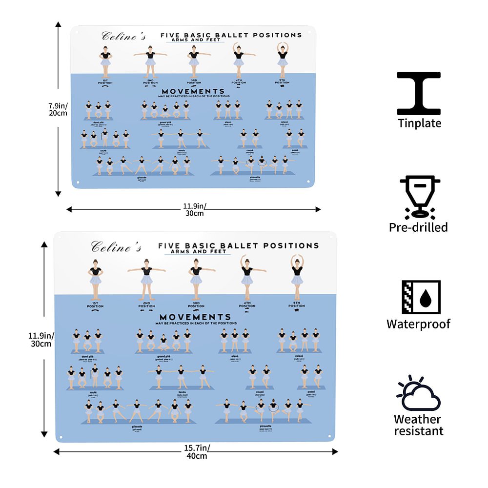 Personalized Ballet Dance Positions & Movements Tin Sign Plaque Decorative Wall Art Birthday Gift for Ballerina Ballet Lovers