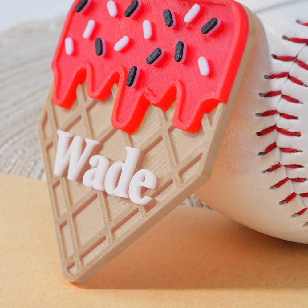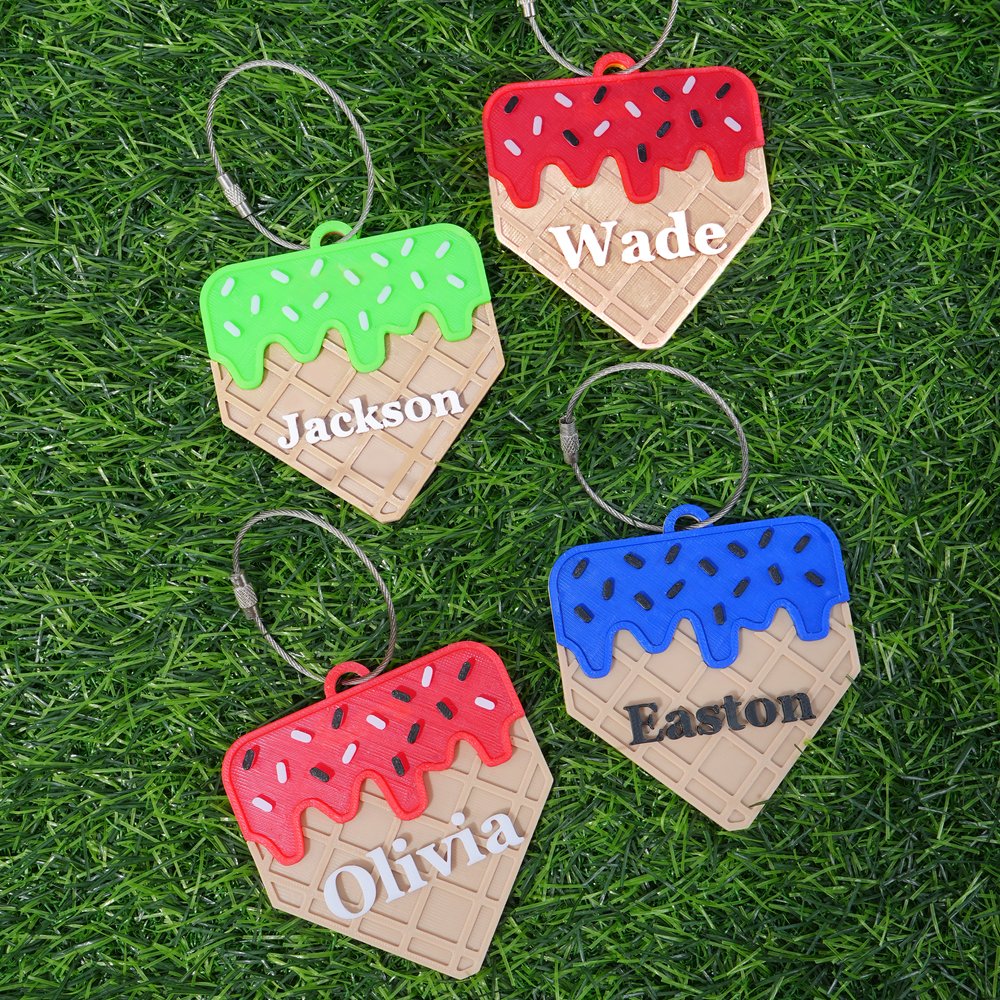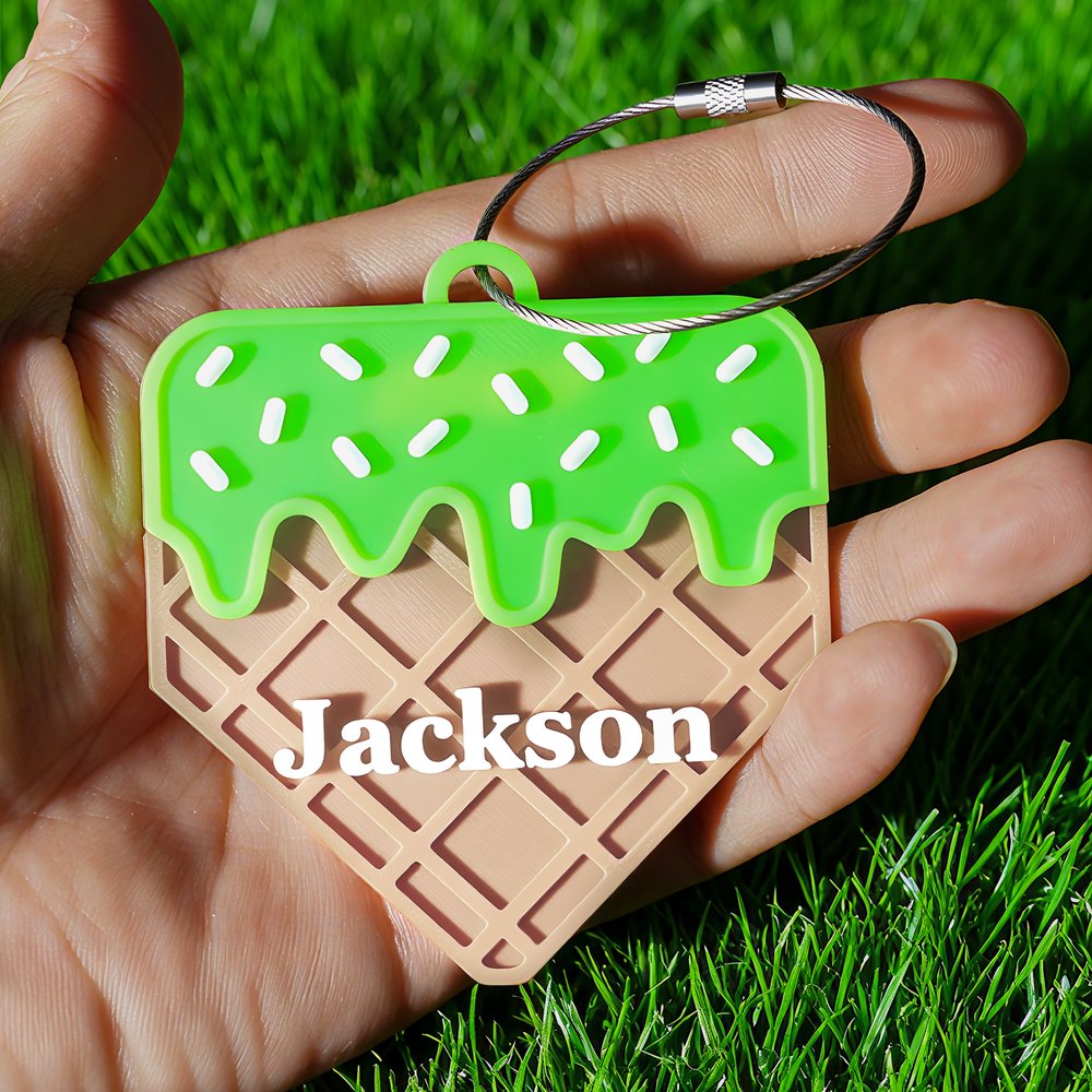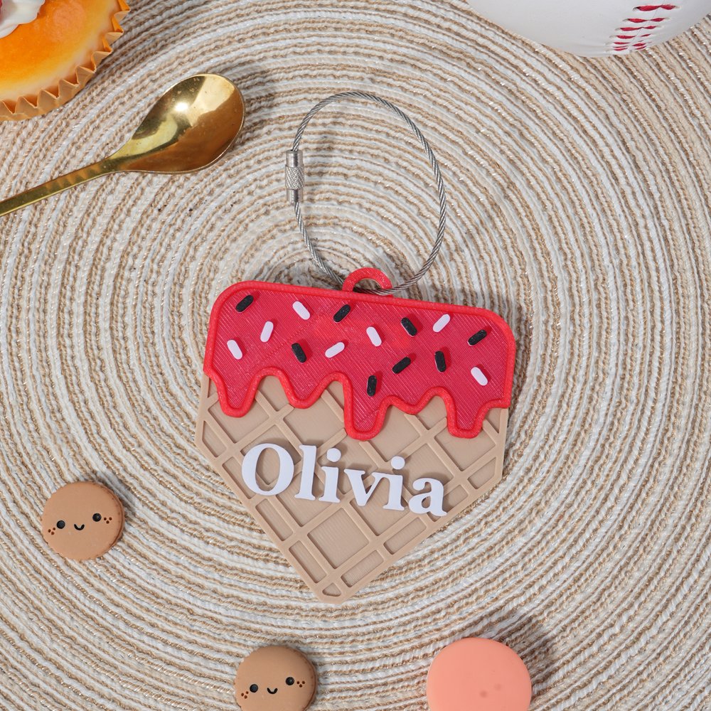 This keychain uses the "melting ice cream dripping" motif as its core design element, cleverly integrating the checkered texture of the ice cream cone base with colourful sprinkle decorations to create a playful and dynamic visual effect. It supports personalized colour schemes and name customization, making each keychain a unique style symbol.
