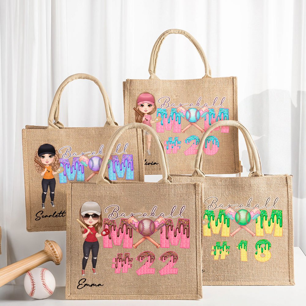 The uniqueness of our tote bag lies in its beautiful cartoon baseball mom, name, and sweet ice cream number. The bright colours express the baseball mom's love, joy, and satisfaction for the sports event. You can create a unique and one-of-a-kind sports accessory for a baseball lover.