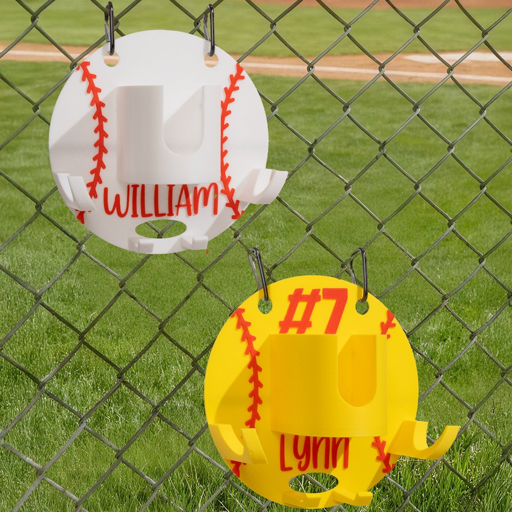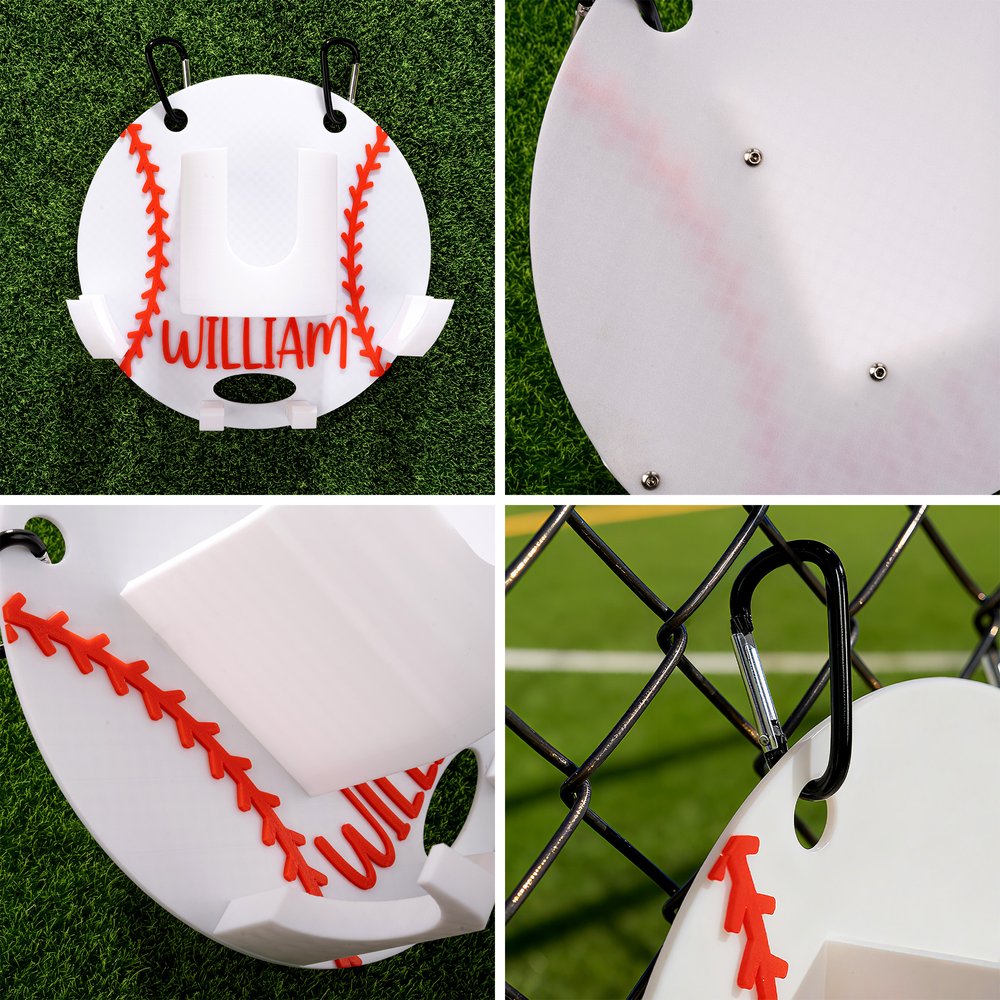 This 3D-printed organizer features a classic baseball or softball silhouette, making it both a functional tool and a standout piece of sports-themed gear. Its sturdy structure hooks securely onto dugout fencing, giving every player an easy and stylish way to keep personal equipment organized.