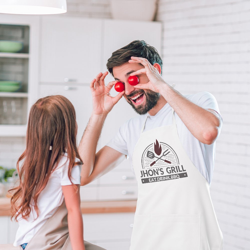 The design elements of the apron include grills, flames, shovels, forks, etc., which perfectly reflect the theme of barbecue and cooking. With Personalized text customization, it not only shows unique taste but also shows Dad's pride as a barbecue master.