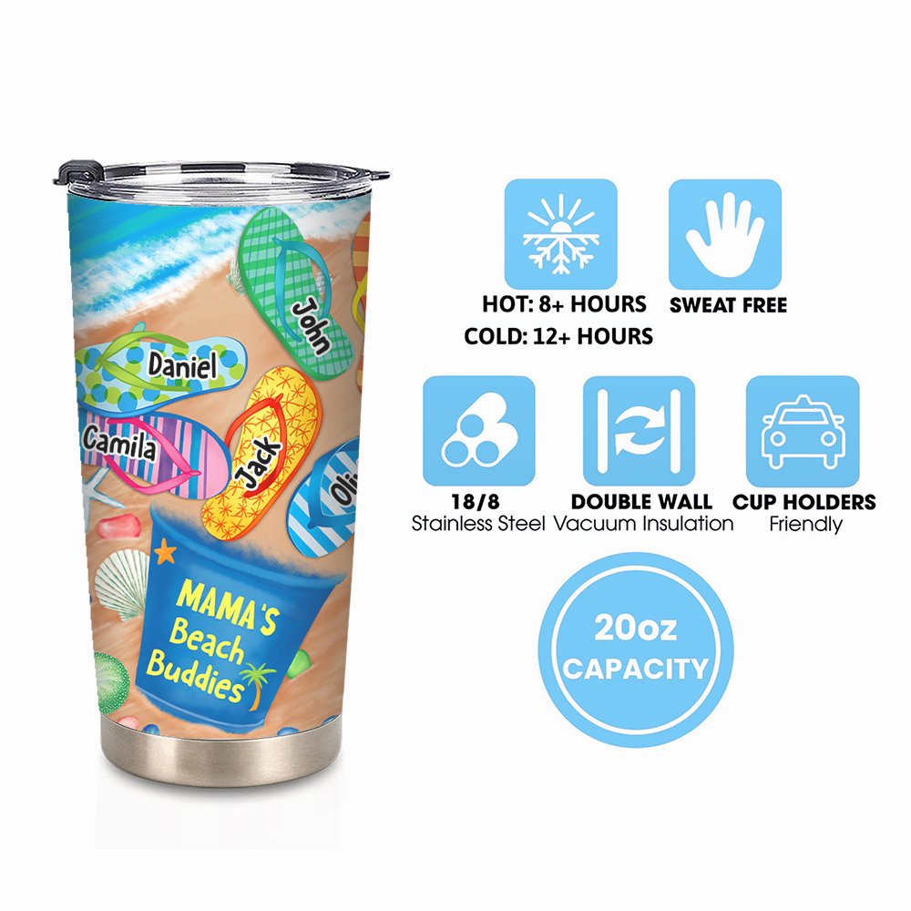 Imagine a tumbler with your loved one's name on the slippers. This adorable feature allows you to Personalise the gift with 1-8 names and slippers, celebrating your unique family bonds. It's a delightful way to add a fun element to every beach day.