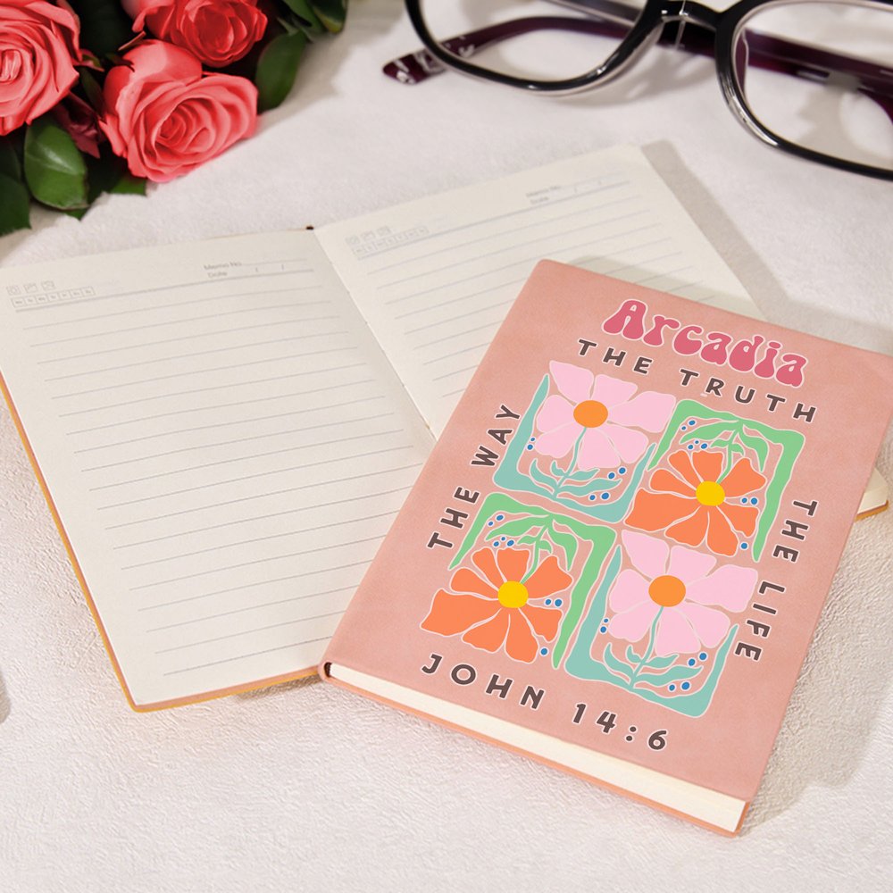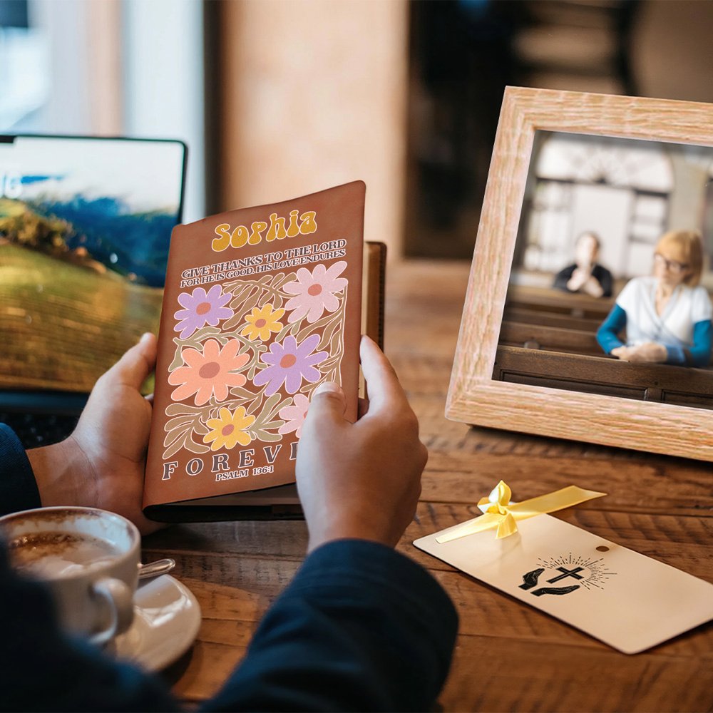 Personalized Bible Floral PU Leather Notebook with Name Birthday Anniversary Religious Gift for Family Friends Christian