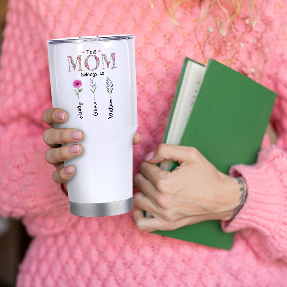 This 30 oz Personalized birth flower tumbler is inspired by the unique flower element to create an exclusive gift for every family member. It can be customized with 1-16 birth flowers and names to meet the needs of large families. "This MUM or NANA... belongs to..." is printed on the tumbler.