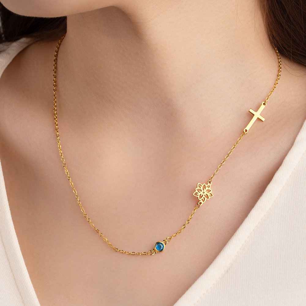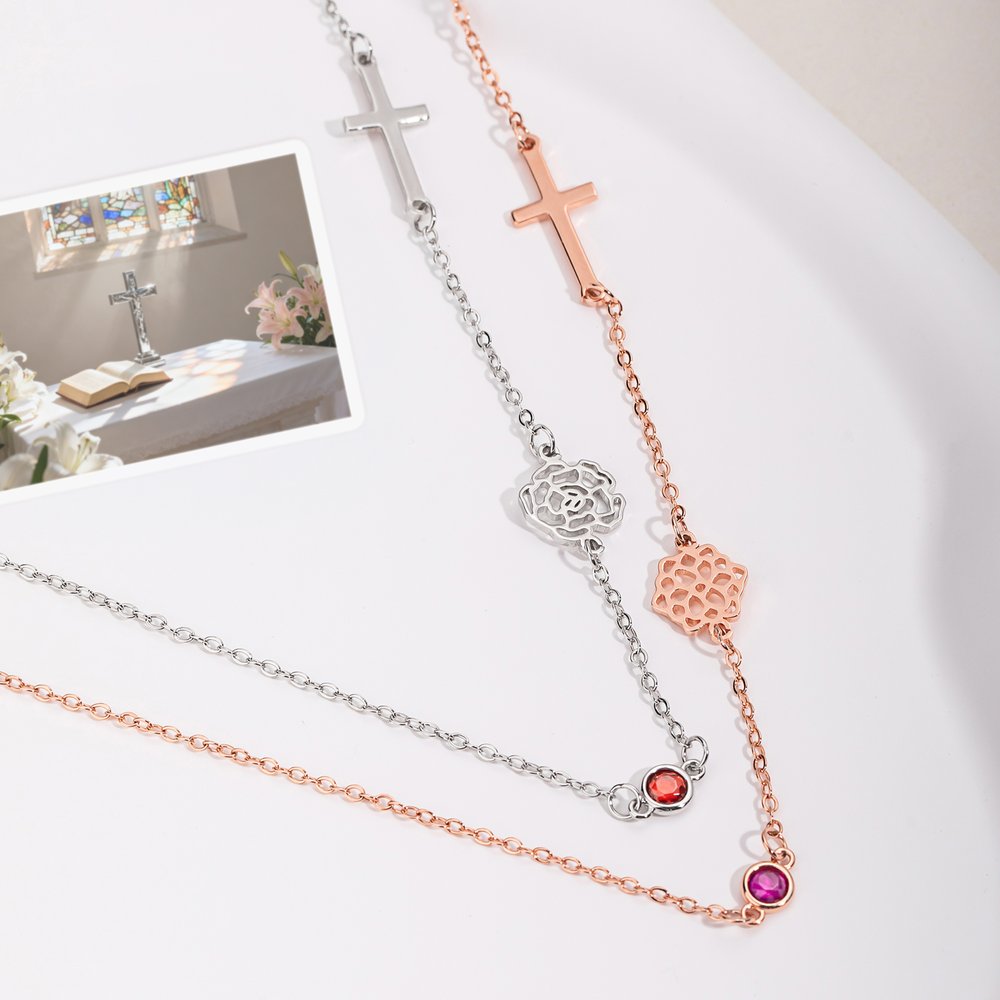 When the sacred cross meets your exclusive birth flower and birthstone, this customized necklace becomes a unique intersection of your faith and life. The exquisite cross shape embodies piety and reverence for God; the birth flower and birthstone are like the life code written for you by our Heavenly Father. Every time you wear it, it's a silent declaration of faith.