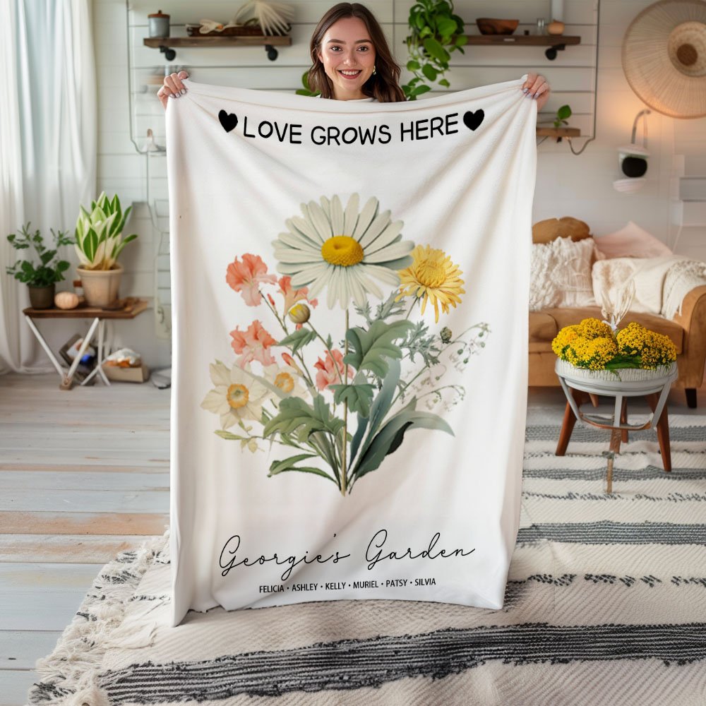 This blanket is printed with a vintage and elegant birth flower pattern, which you can choose according to the number of family members and birth month. Family is like a big garden, full of different kinds of flowers. The love of the elders is like fertilizer, nourishing the earth and the flowers. Each member of the family has a tight bond. You can also enter your name or the name of a family member to make your blanket even more unique.