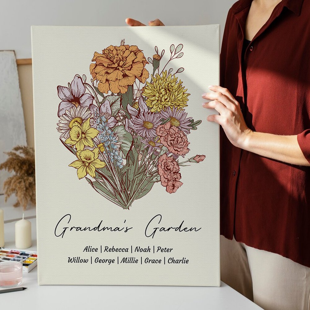 Whether it's a birthday, Mother's Day, or simply a gesture of appreciation, this birth flower canvas painting makes a thoughtful gift for grandmothers and mothers.