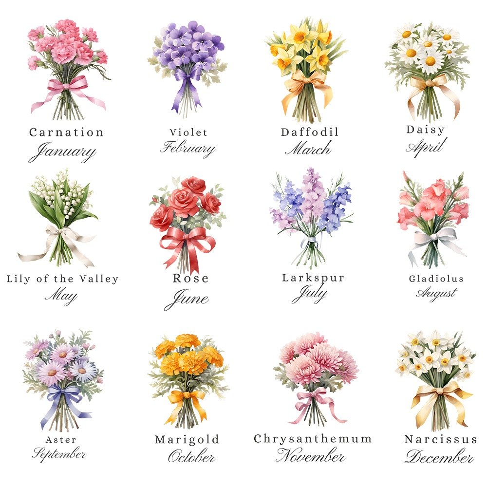 Our exquisite birth flower bouquet ceramic vase is a unique gift. You can choose a beautiful birth flower bouquet and customize a name. Give this elegant birth flower bouquet to your mother, grandmother, or a lady you care about.