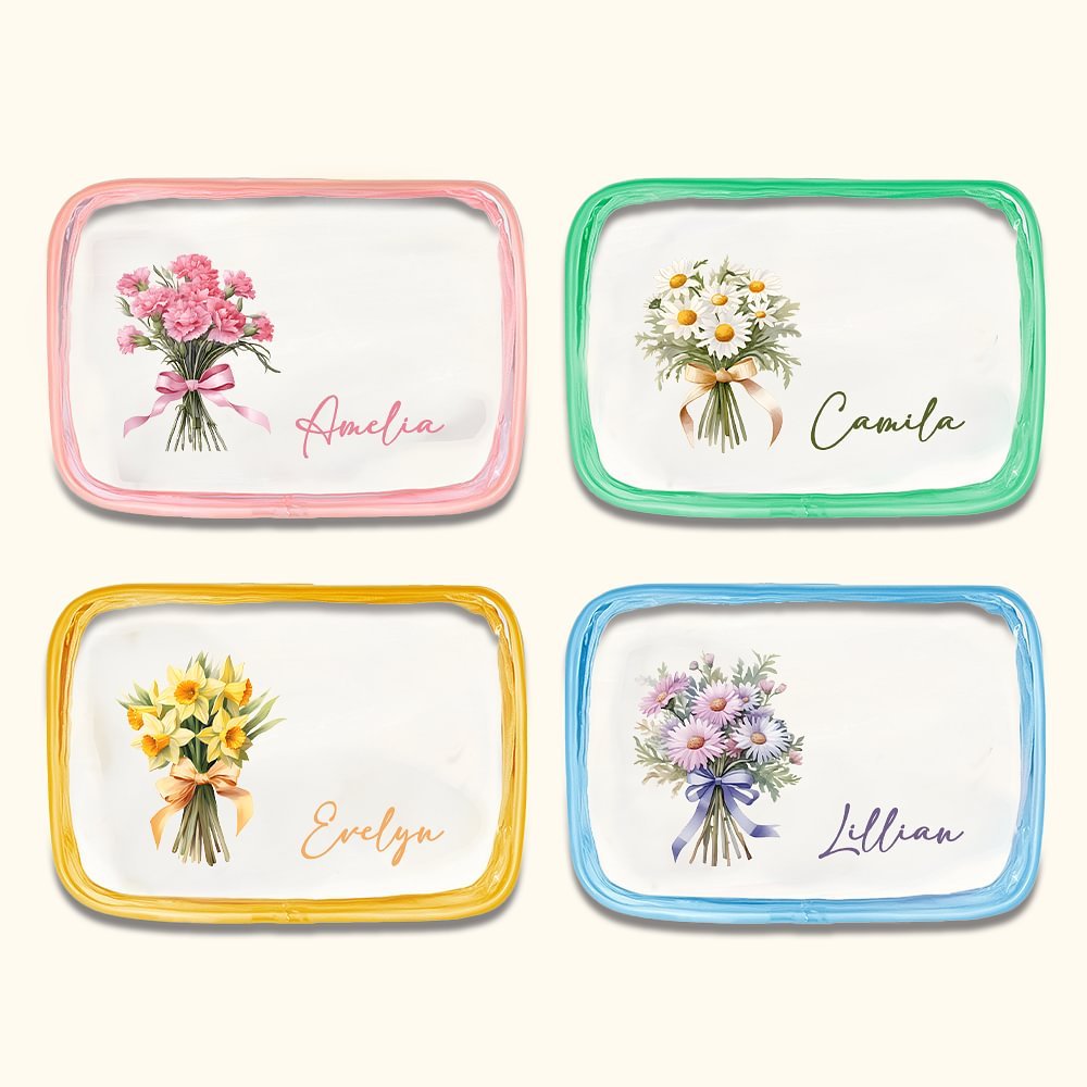 The makeup bag incorporates a unique birthday bouquet pattern. You can choose according to your birth month. You can also customize the name on the bag to make it more Personalized.