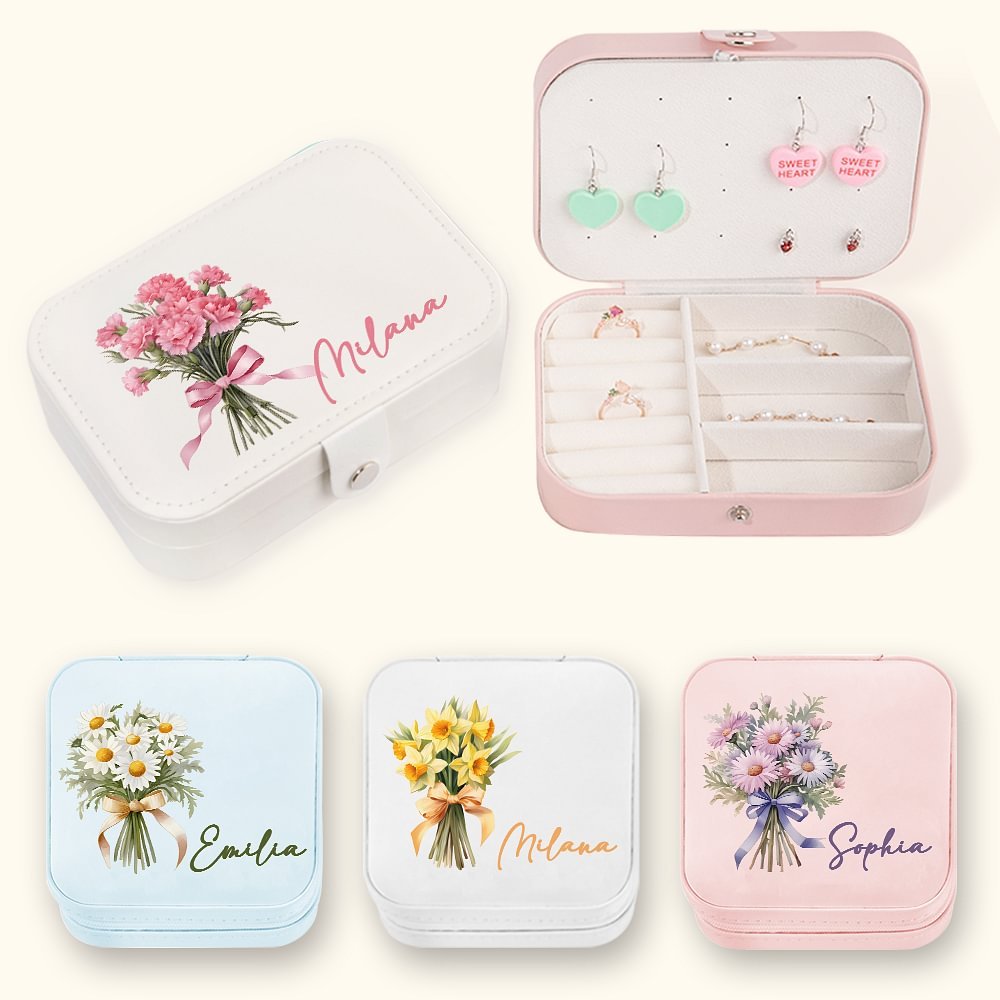 The design of this stylish jewellery box is simple and eye-catching. The jewellery box is printed with elegant birthday flowers, which you can choose according to the birthday month. You can also customize the name on the box to make it more Personalized so that the recipient can feel your care and taste.