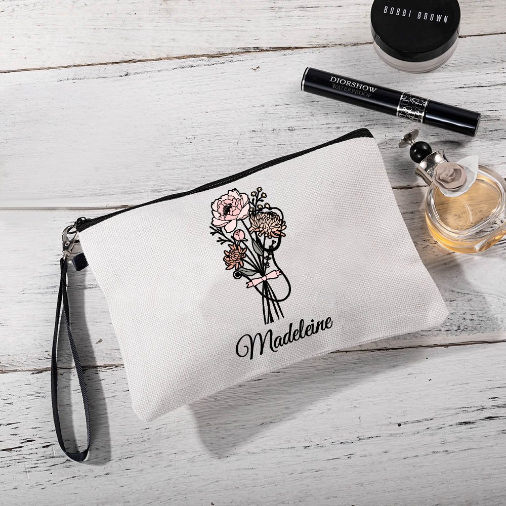 This stylish makeup bag features birthday flowers and a stethoscope, which you can choose according to your birth month. You can also customize the name on the auscultation box to make it more personal.