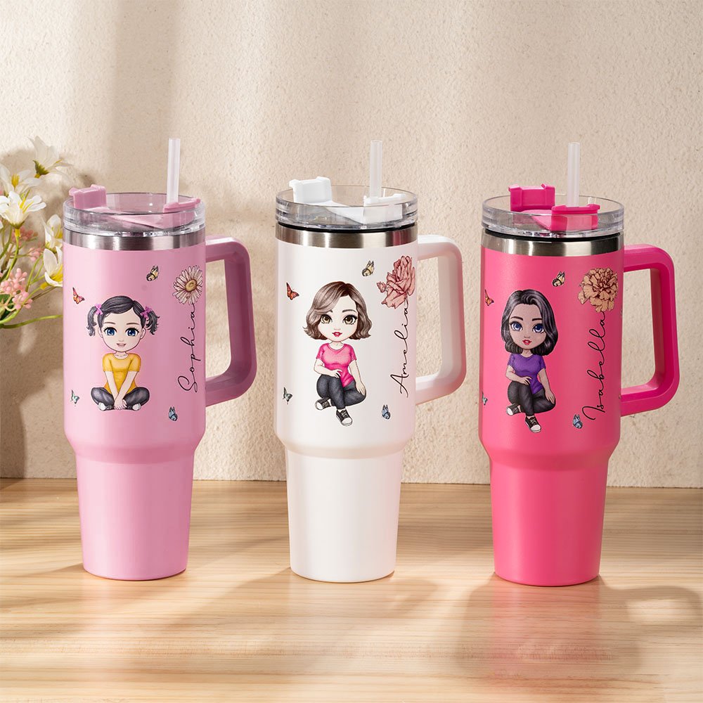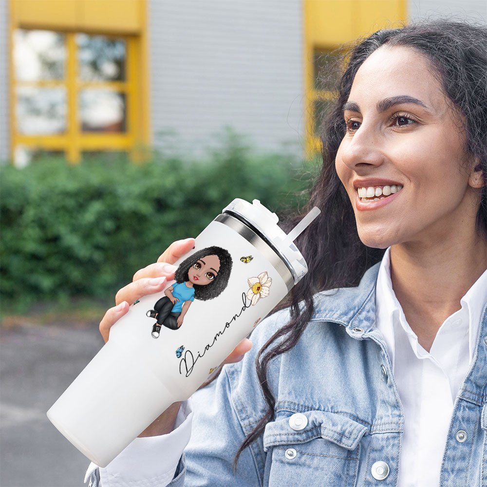 The birth flower butterfly tumbler is a delightful gift that combines grace and personalization. Adorned with a beautiful birth flower design, it can be customized with a name and the recipient’s cartoon image, making it a truly unique and cherished gift for women.
