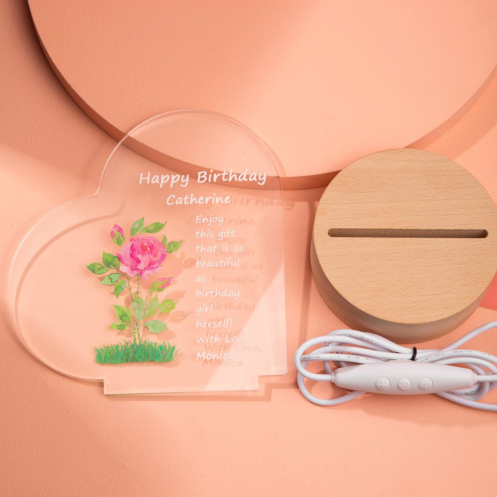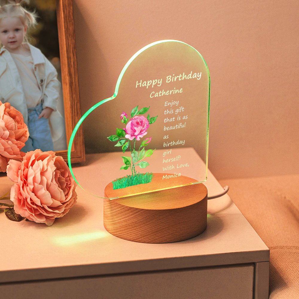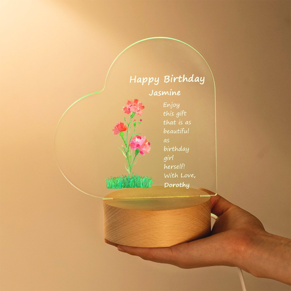 This night light adds a romantic and warm atmosphere to your life with its unique design. Choosing a pattern that combines a birth flower with warm blessing words and customizing two names makes each light unique and the best choice for you to express your personality. Whether it is for a loved one or a child, it can be the best companion.
