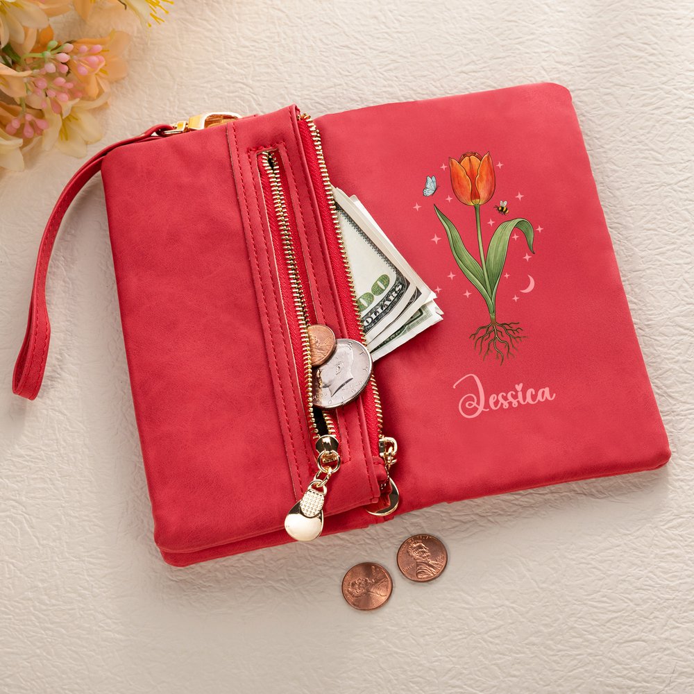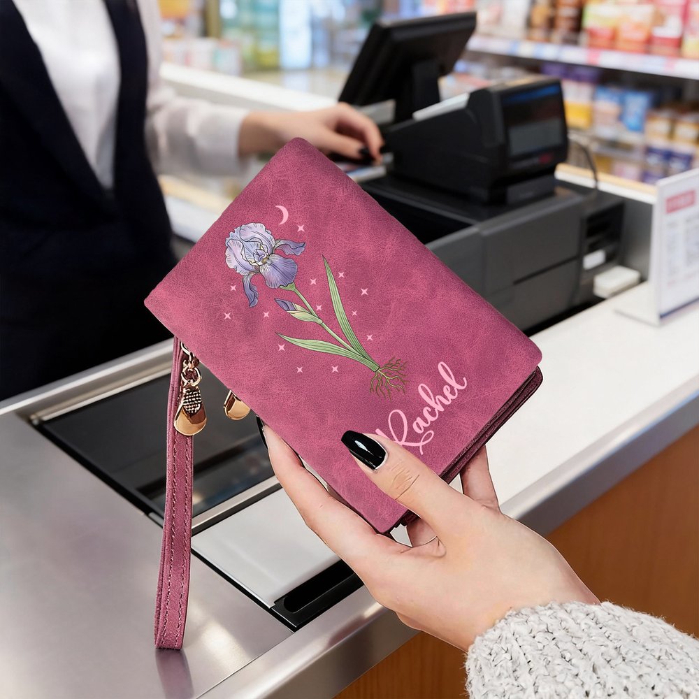 This floral women's wallet combines natural elegance with personalization. Each features a delicate birth flower, accented with butterflies, stars, and moons. Customizable with a name. Available in long (more storage) and short (compact and light) styles—perfect for commuting or shopping trips.