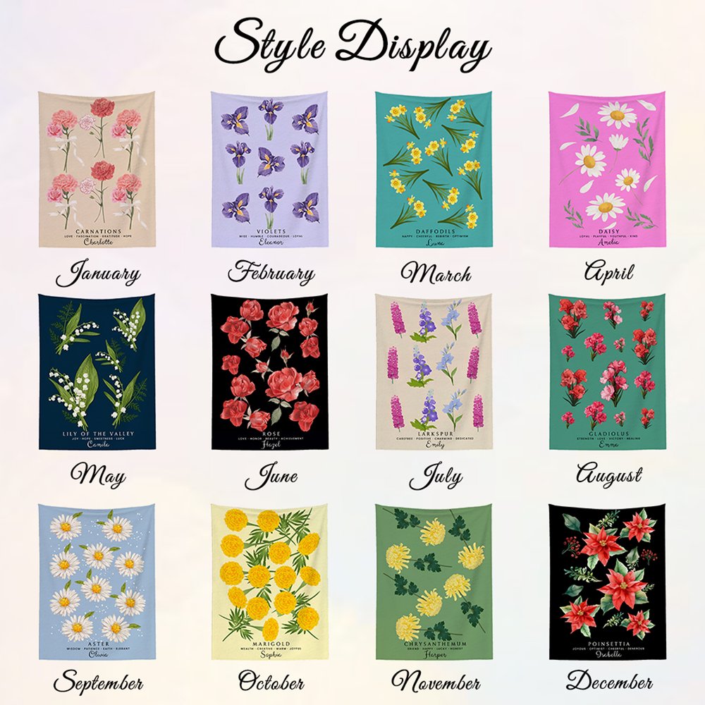 Each blanket features vibrant birth month flowers as the main design, showcasing the beauty and vitality of each season. You can customize the birth flowers and names, adding a deeper personal significance to the blanket. Whether it’s the gentle carnation, the passionate rose, or the golden autumn chrysanthemum, these floral patterns not only enhance the visual appeal of the blanket but also bring warmth and liveliness to any room, transforming the dreariness of winter into a colourful haven.
