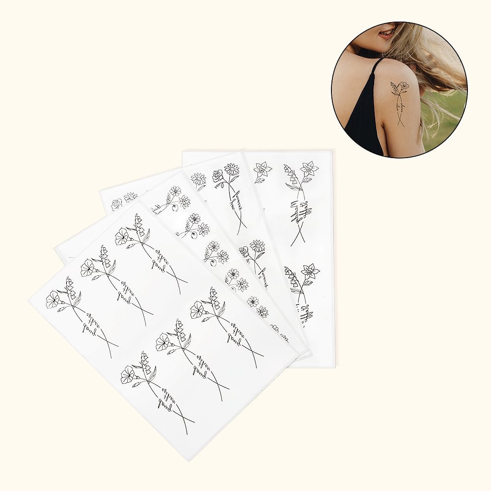 Our tattoo sticker showcases the birth flowers of two individuals side by side, symbolizing their unique personalities and the special connection they share. Each flower holds its own significance, making this tattoo a truly Personalised masterpiece.