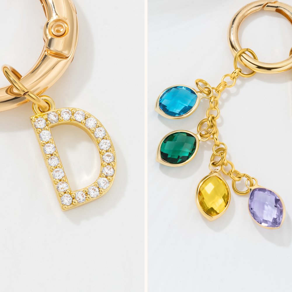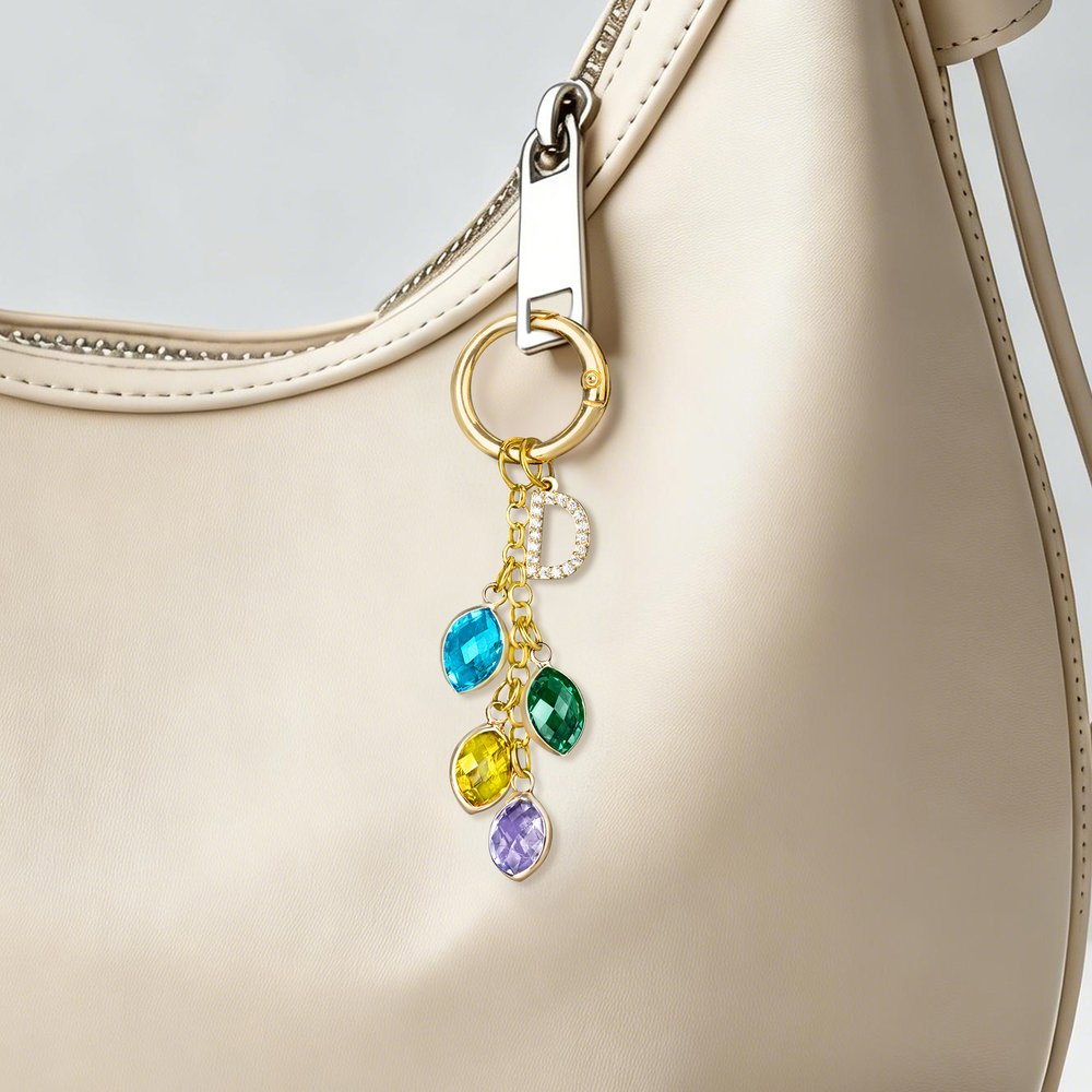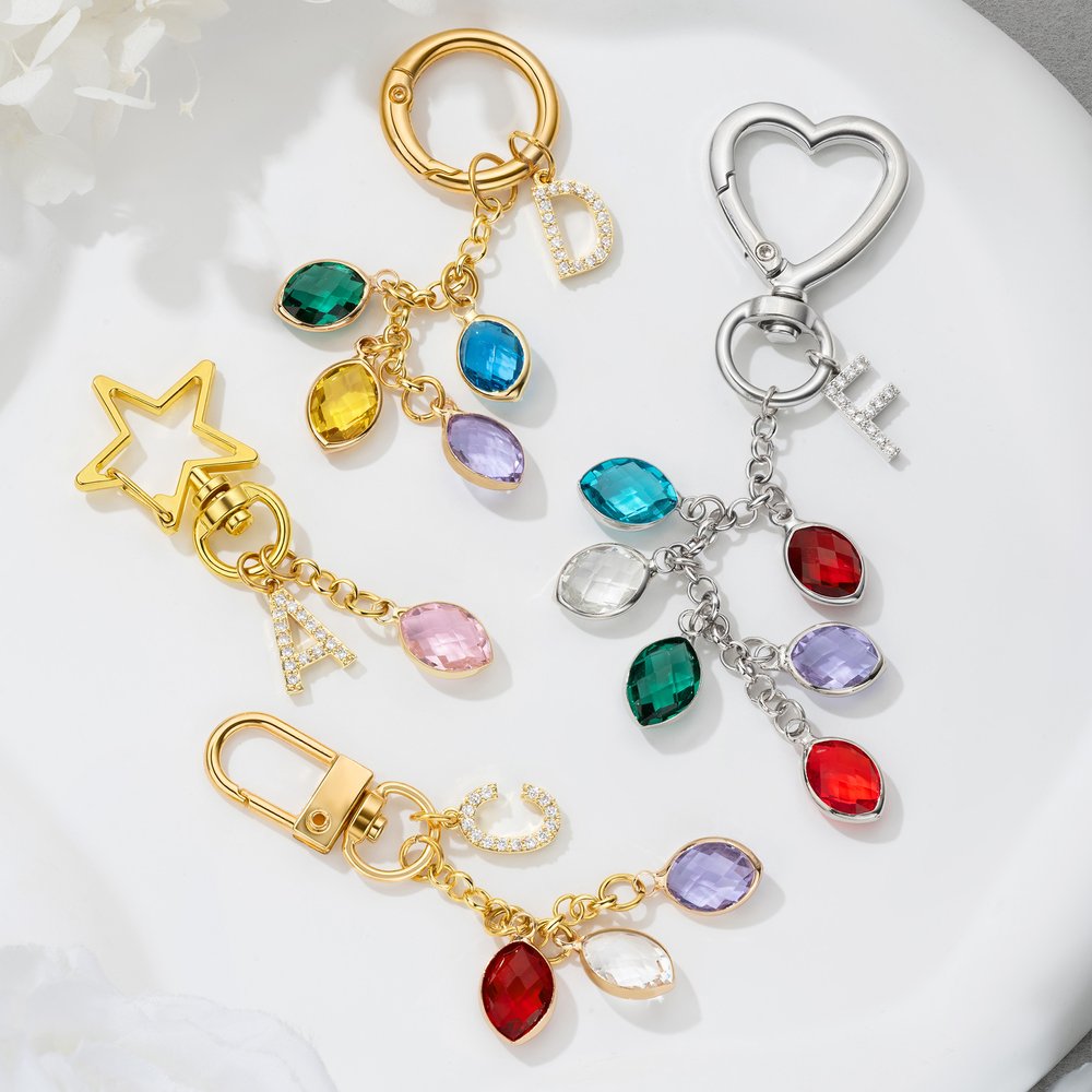 The keychain is crafted from durable zinc alloy for the keyring and brass for the birthstone pendants and letter charm, ensuring long-lasting shine and resistance to tarnish. The birthstones are made of vibrant, faceted crystals that catch the light, adding a touch of sparkle to everyday use. The lightweight design ensures it is comfortable to carry, while the sturdy construction holds up to daily wear and tear on keys or bags.