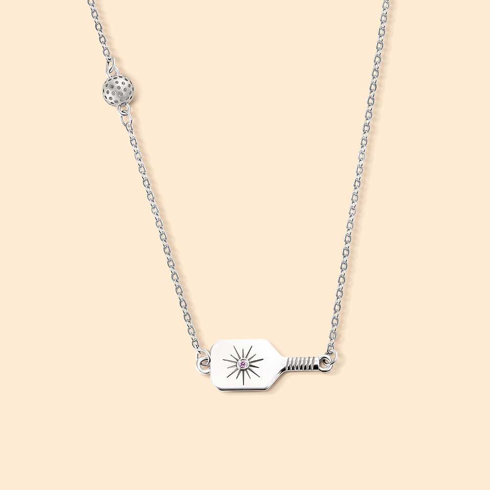 Our stunning new design features a pickleball paddle paired with a pickleball and a perfectly balanced 3D pickleball as a stylish accent. Pair it with a birthstone to make it truly one-of-a-kind.