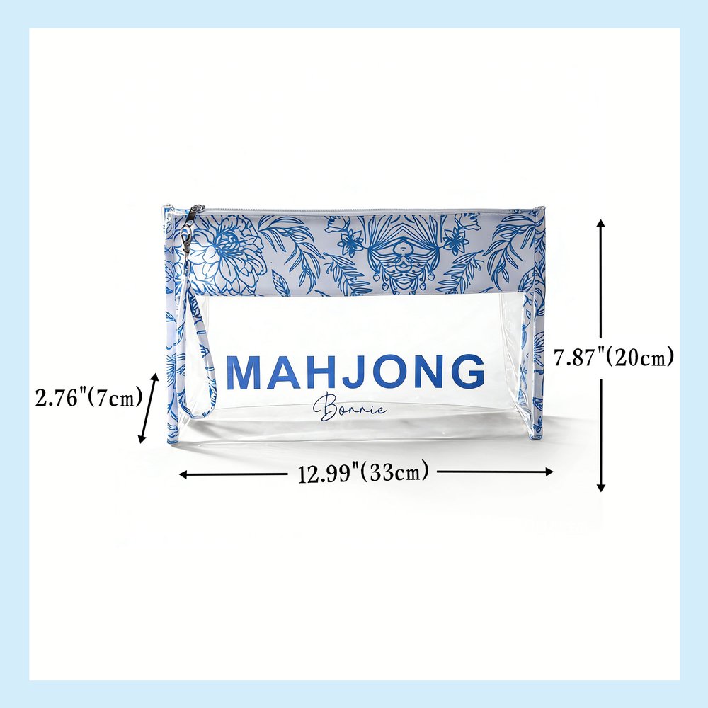 This storage bag blends traditional Chinese blue-and-white porcelain patterns with classic mahjong-themed design, plus a custom name on the transparent panel. The fusion of cultural aesthetics and personalized details turns a functional bag into a unique, stylish accessory for mahjong lovers.