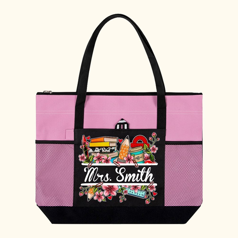 This flower stationery tote bag can be Personalised with the teacher's name, making it a special and one-of-a-kind gift. The customization adds a personal style, allowing teachers to proudly showcase their dedication to education while carrying their belongings in style.